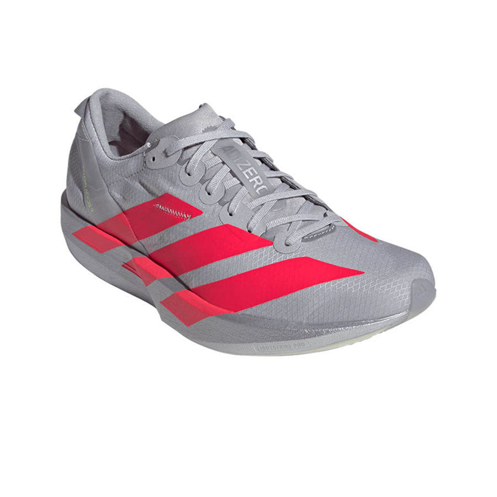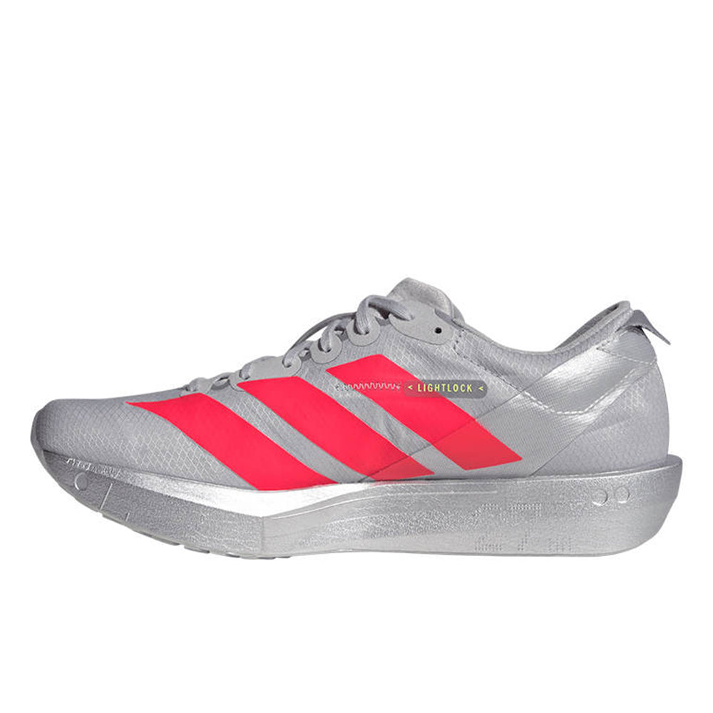 Chasing finish lines requires lightweight shoes with energy, and these ADIDAS Adizero Adios 9 Women's Running Shoes have it. Achieve your next half-marathon PB with super-light and resilient Lightstrike Pro cushioning. Push for your fastest pace with the support of a stretch mesh upper that provides a light, locked-in feel. A rubber outsole grips the pavement as you go.