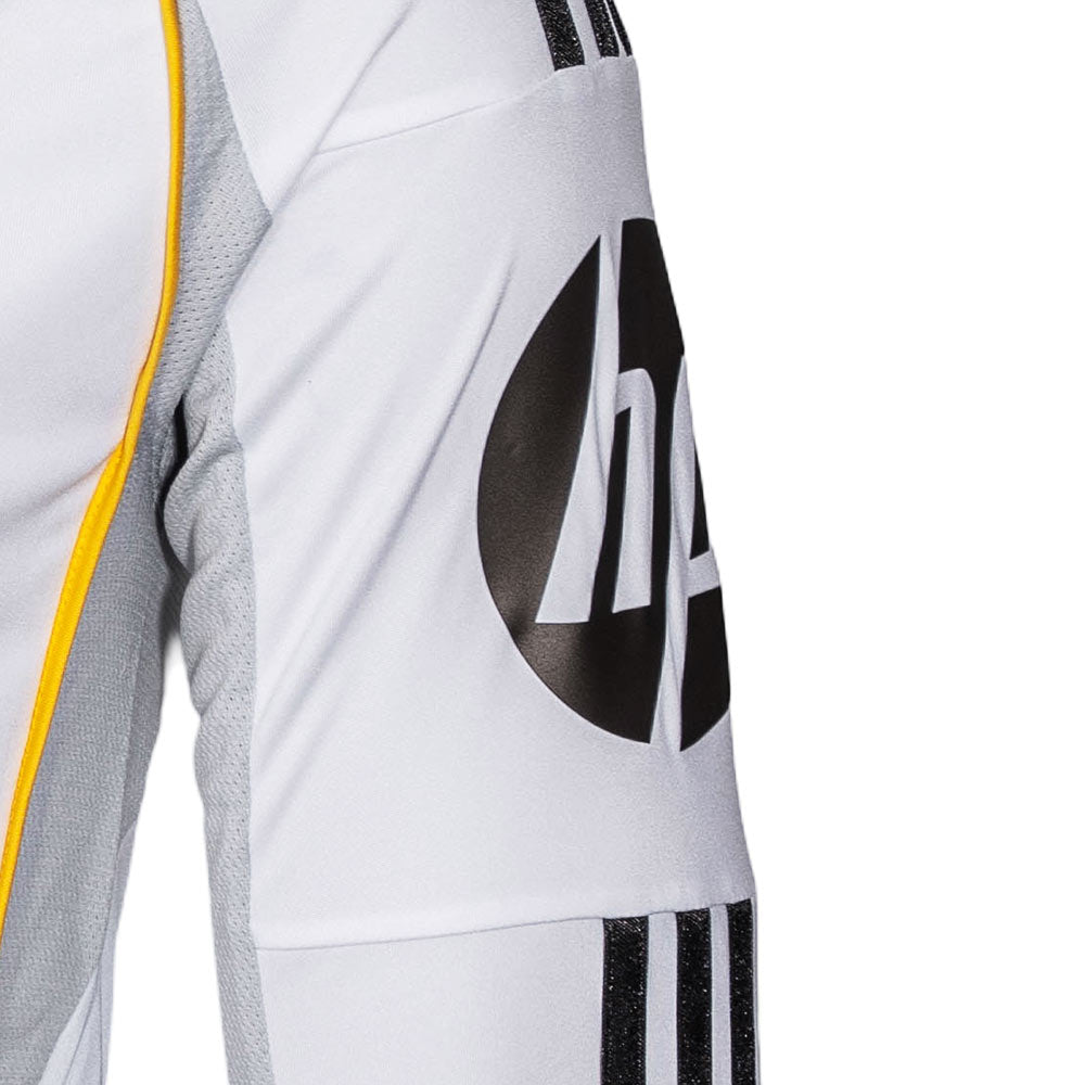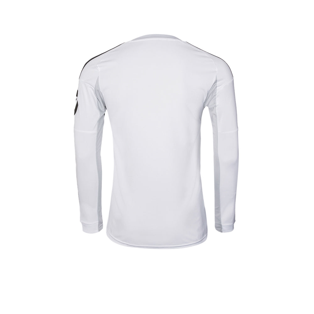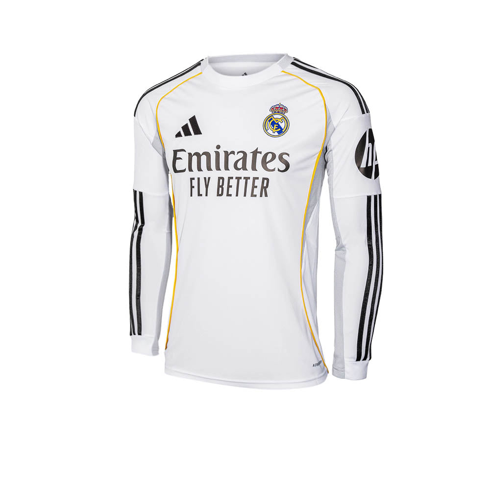 Built on firm foundations. This ADIDAS Men's Real Madrid Home 2025/26 Long Sleeve Jersey marks the Bernabéu's latest refurbishment with a design featuring subtle shapes, textures and colours borrowed from its long and storied history. Created to be worn at the legendary stadium in the 25/26 season, it fields moisture-managing AEROREADY for comfortable support and an embroidered club crest for unmatched pride.