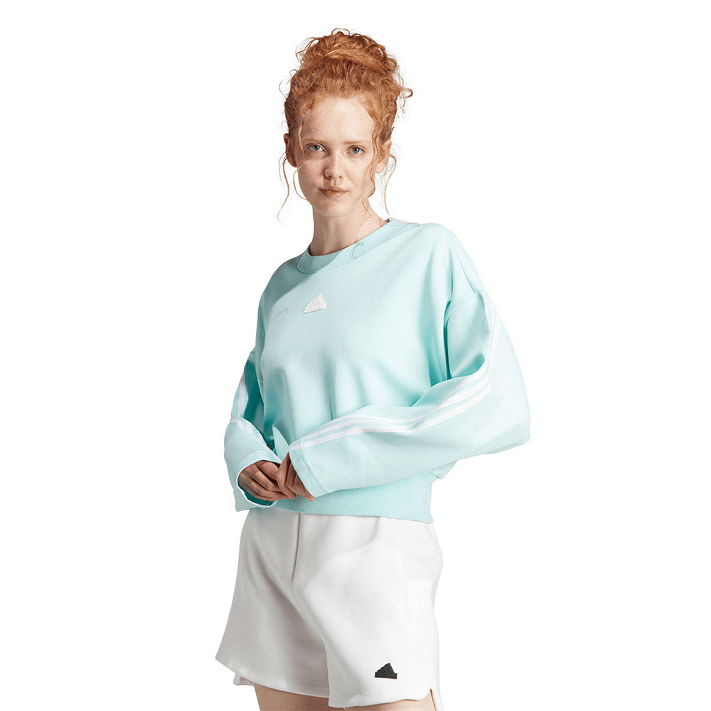 Keep things loose in this ADIDAS Future Icons 3-Stripes Women's Sweatshirt. Maybe you've been working hard all day, and you're ready to chill out, or maybe you're getting ready for a casual dinner with friends. Either way, this sweatshirt will keep you relaxed and enjoying every moment. The loose shape provides comfort while the ribbed neck and hem give it some sporty structure. Recharging is an essential part of every day, so why not look cute doing it?