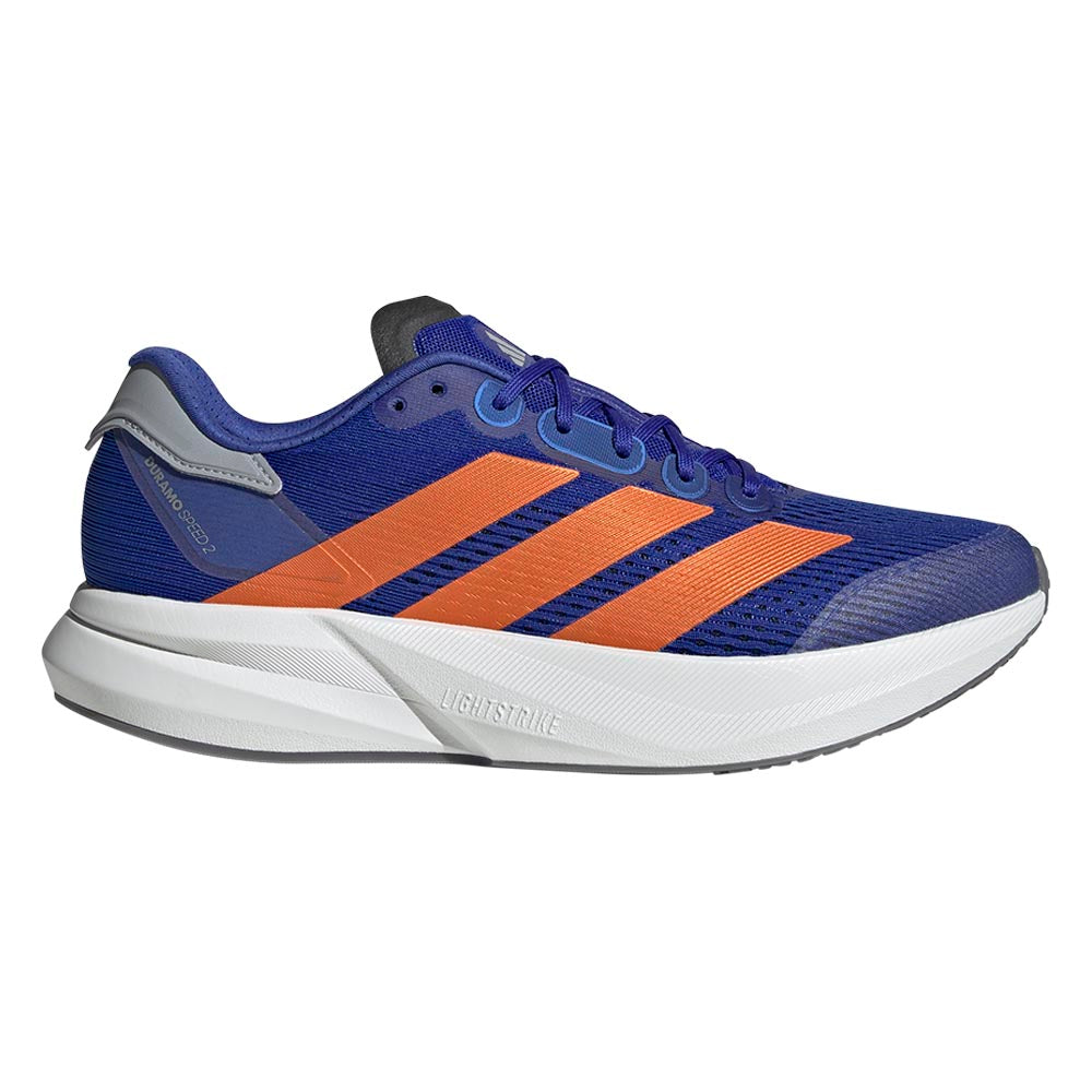 Whether you have a 10k on your calendar or a personal running goal in sight, these ADIDAS Duramo Speed 2 Men's Running Shoes help you train with purpose. They're light and fast with responsive Lightstrike cushioning and a TPU outsole that offers traction on the road or track. The engineered mesh upper is breathable and supportive, so you can keep pushing your pace.
