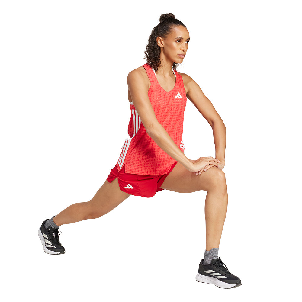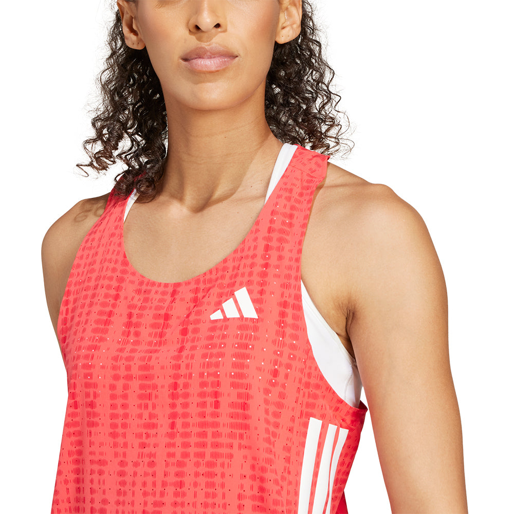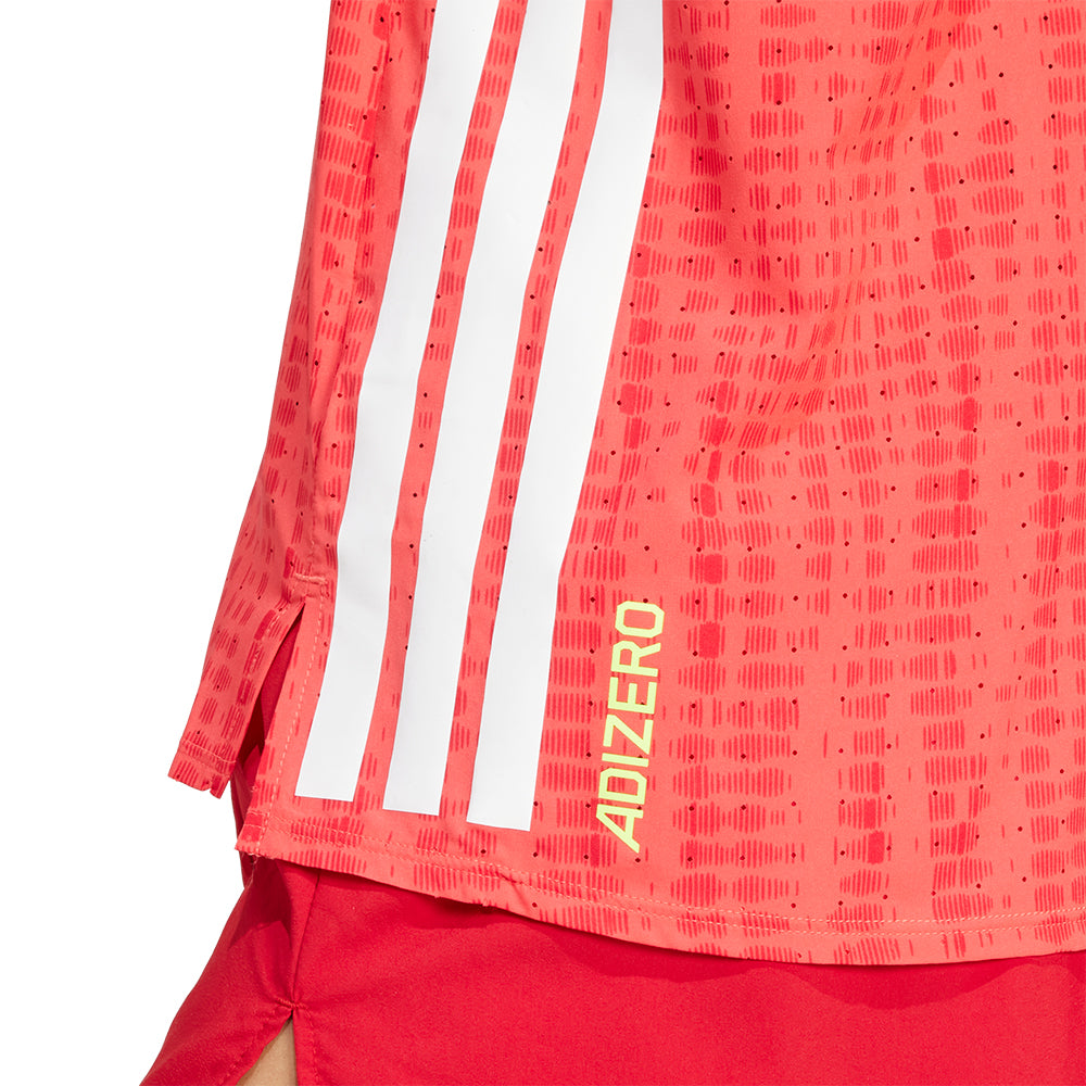 Set your sights on the impossible. Run towards it. Whether setting a PR or completing your first marathon, this ADIDAS Adizero Women's Running Tank offers distraction-free performance to help you achieve your goals. It fits slim for a barely-there feel and has perforations to keep air circulating. The side seams are shifted forward and abrasion points are taped over to reduce chafing and friction.