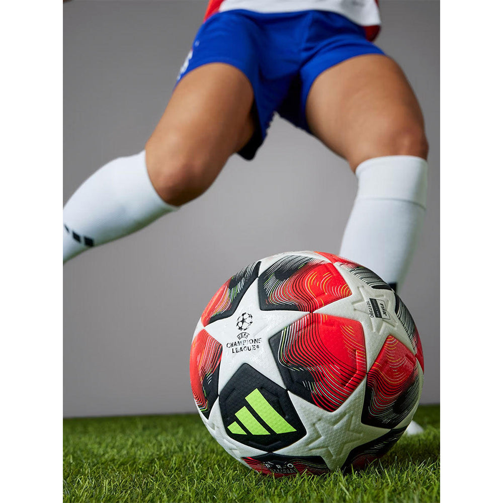 Bring the energy of Europe's elite club competition to your pitch. One of three adidas official match balls gracing the new-format UEFA Champions League in the 24/25 season, this ADIDAS UCL Pro 24/25 Third Football Balll stands out with a dynamic design and vibrant colours. Seamless and durable, its thermally bonded construction makes for dependable performances on the field.