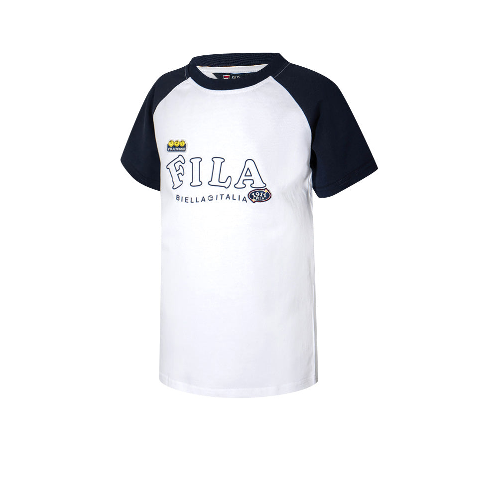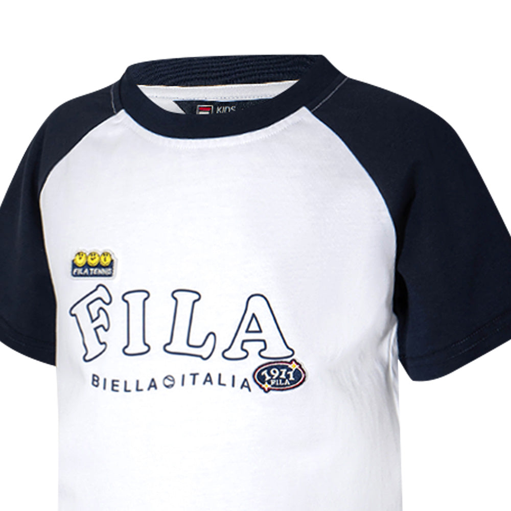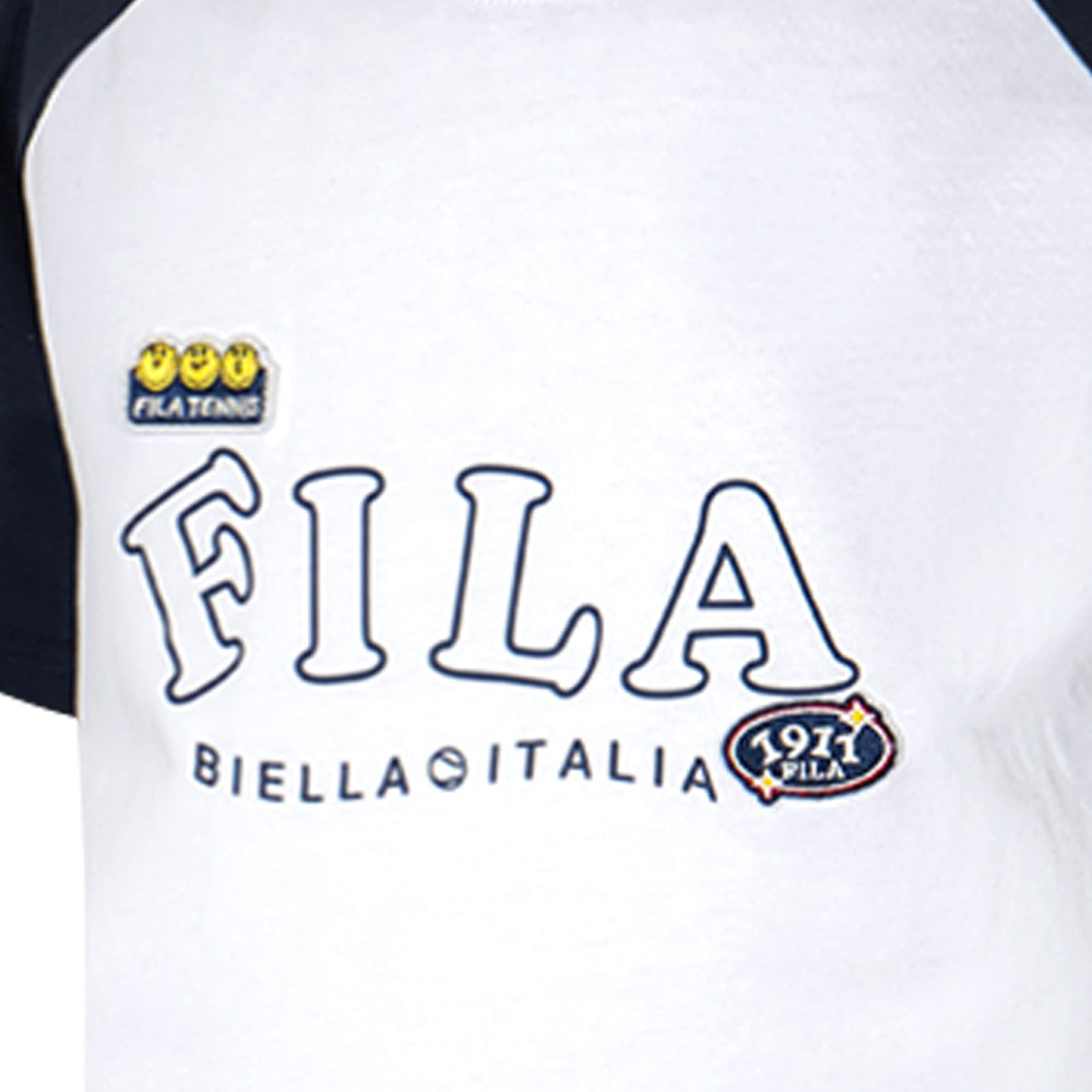 The FILA Heritage Kids T-Shirt offers a classic sporty look with a touch of retro charm. Crafted from soft, comfortable fabric, it features short sleeves, a bold FILA logo on the chest, and a heritage-inspired graphic.