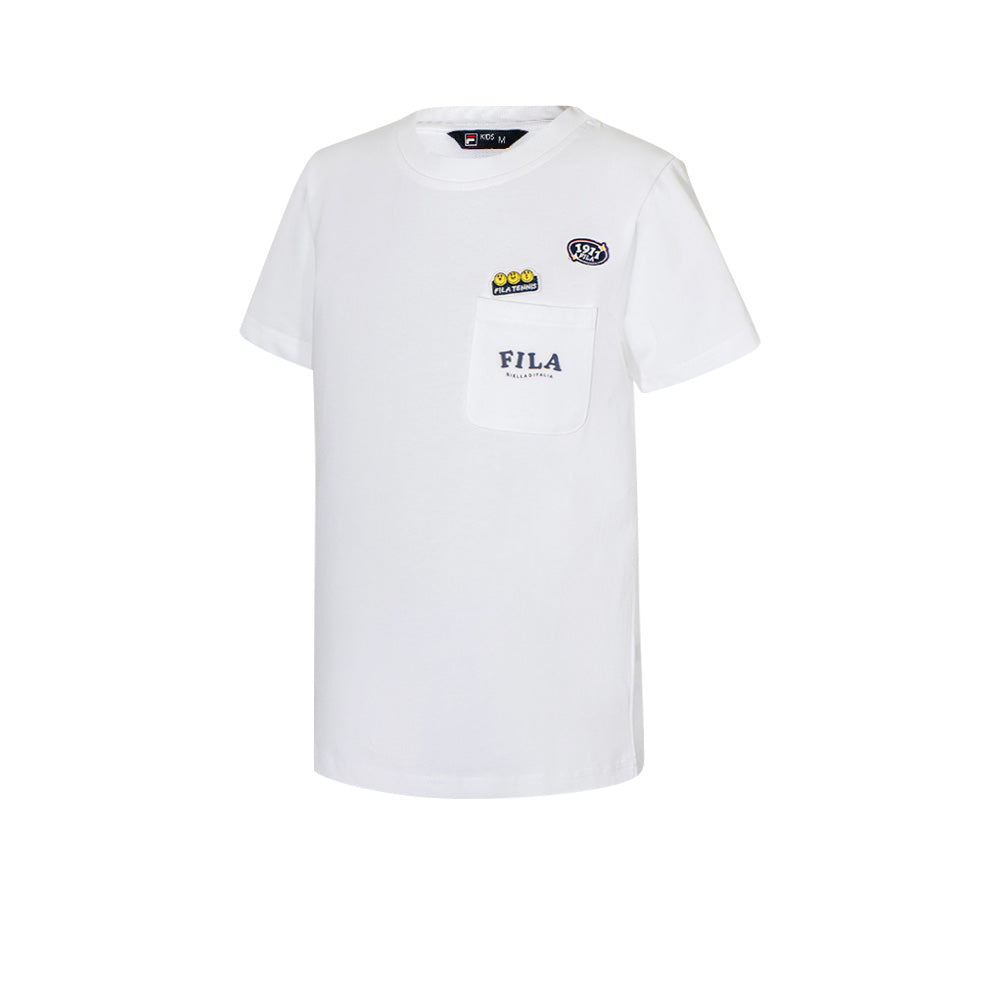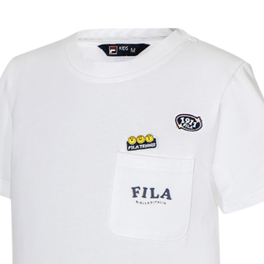 The FILA Heritage Kids T-Shirt offers a classic sporty look with a touch of retro charm. Crafted from soft, comfortable fabric, it features short sleeves, a bold FILA logo on the chest, and a heritage-inspired graphic.