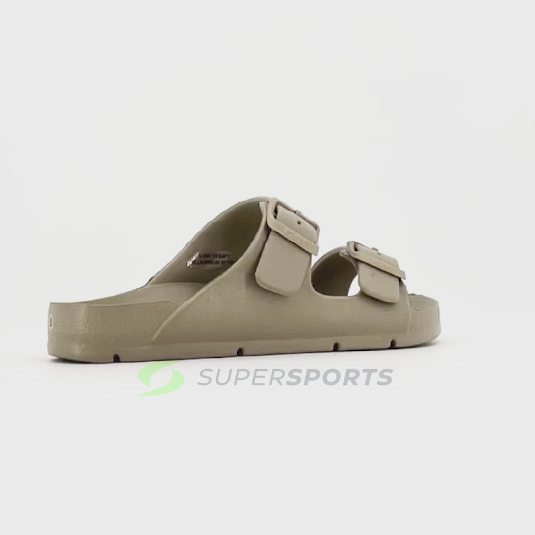 The K-SWISS Comfy V2 men’s sandals are made of quality materials. The slip-on slides also come with adjustable straps, allowing you to customize the size accordingly. While the footbed labeled with K-SWISS is soft and comfortable.