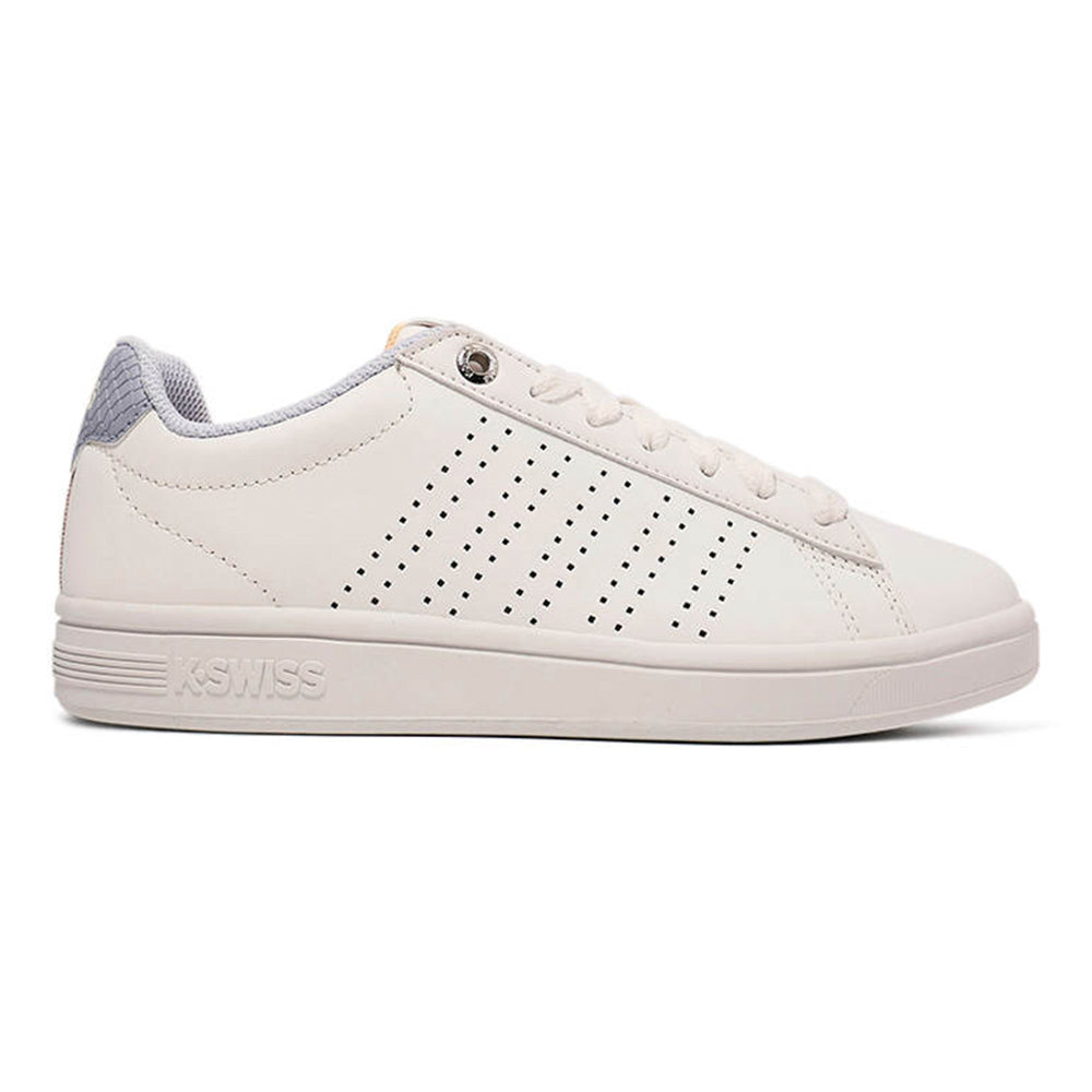 The K-SWISS Court Casper III women's casual shoe is inspired by classic style. Designed to suit every occasion and style, the Court Casper is the perfect balance between modern and retro. They are made from premium leather, detailed with a perfect 5 stripes design. The upper is made from leather. The shoes are lined with synthetic leather. There are laces for adjusting the tightness. Rubber outsole Increases traction and helps support the feet well.