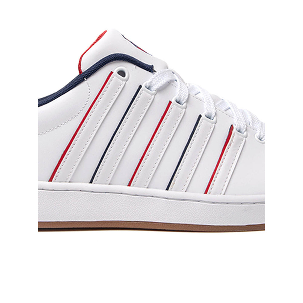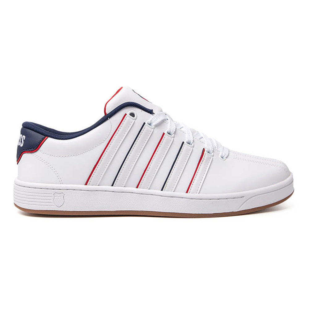 Our K-SWISS Court Pro II T CMF Men's Lifestyle Shoes unite classic style with modern comfort. The timeless design features K-Swiss’ signature details, including a leather upper, signature D-eyelets, five stripe tape branding, and iconic box stitched toe. Modern comfort upgrades include a cushy Smartfoam Strobel board, long-lasting Ortholite sock liner, moisture wicking lining, and new lightweight rubber compound. Wherever you’re going, step out looking and feeling your best in this classic court sneaker.