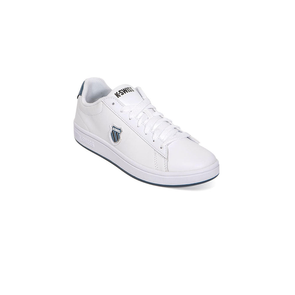 A K-Swiss classic gets a contemporary refresher with the K-SWISS Court Shield men’s casual shoes. Utilizing the understated features of the original Court Classic, this updated take offers timeless court inspiration in a versatile construction built for comfortable, everyday wear. A leather upper offers durability as a modern debossed shield logo adds an elegant touch to the clean side paneling. Stitched K-Swiss 5 stripes augment the medial side and nod to classic court heritage.