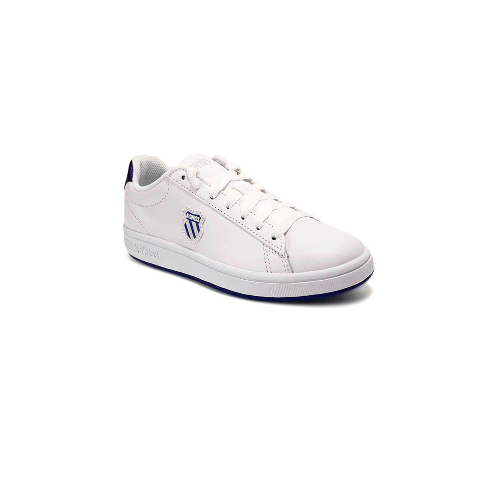 A K-Swiss classic gets a contemporary refresher with the Court Shield. Utilizing the understated features of the original Court Classic, this updated K-SWISS Court Shield women’s casual shoes offer timeless court inspiration in a versatile construction built for comfortable, everyday wear. A leather upper offers durability as a modern debossed shield logo adds an elegant touch to the clean side paneling. Stitched K-Swiss 5 stripes augment the medial side and nod to classic court heritage.