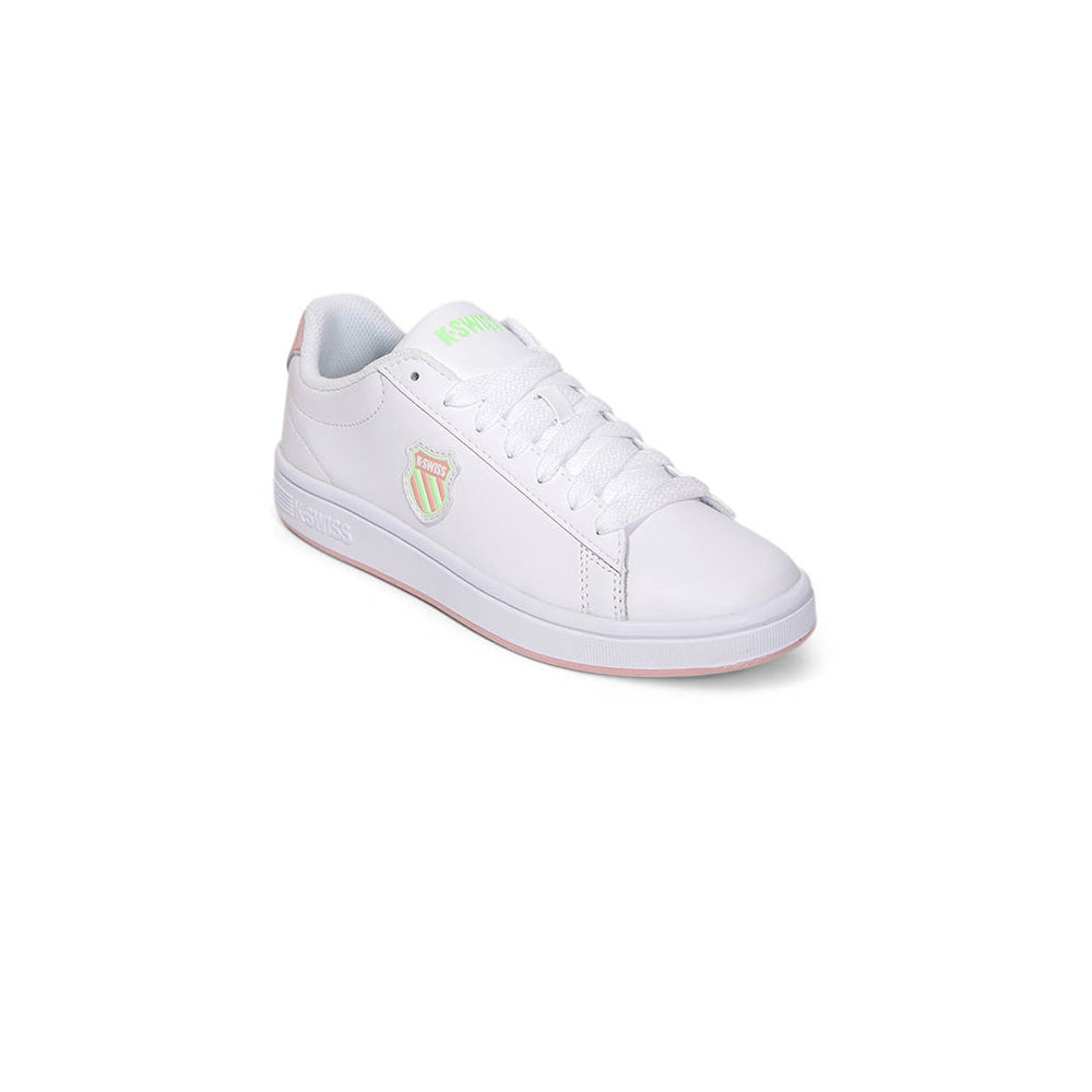 A K-Swiss classic gets a contemporary refresher with the K-SWISS Court Shield women’s casual shoes. Utilizing the understated features of the original Court Classic, this updated take offers timeless court inspiration in a versatile construction built for comfortable, everyday wear. A leather upper offers durability as a modern debossed shield logo adds an elegant touch to the clean side paneling. Stitched K-Swiss 5 stripes augment the medial side and nod to classic court heritage.