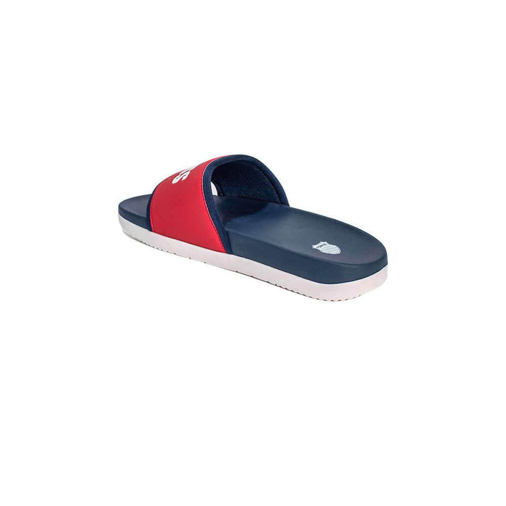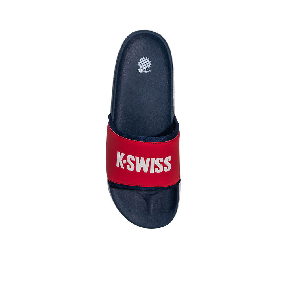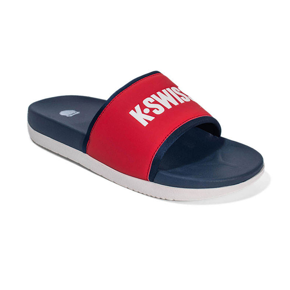 The K-SWISS Miami KSW24SDW009 Men's Sandals are made from quality materials. These slide sandals feature a K-SWISS logo on the strap and are padded with foam for cushioning, while the insole provides good support for every step.