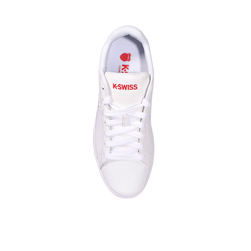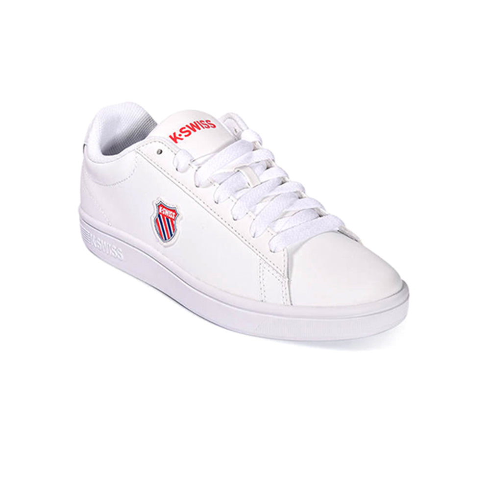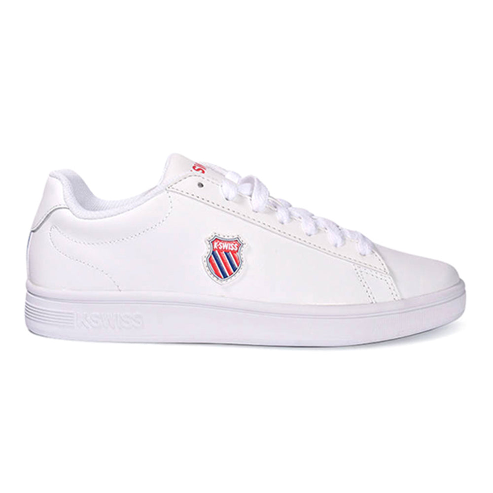 K-SWISS Court Shield gets a contemporary refresher with the Court Shield. Utilizing the understated features of the original Court Classic, this updated take offers timeless court inspiration in a versatile construction built for comfortable, everyday wear. A leather upper offers durability as a modern debossed shield logo adds an elegant touch to the clean side paneling. Stitched K-Swiss 5 stripes augment the medial side and nod to classic court heritage.