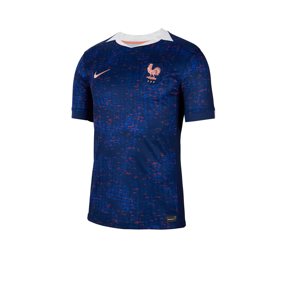 With an iconic "col Claudine" neckline and tweed-style trompe l'oeil print, NIKE Men's FFF (Women's Team) Home Stadium 2025/26 Jersey puts a modern twist on a classic French look. Allez les Bleus!