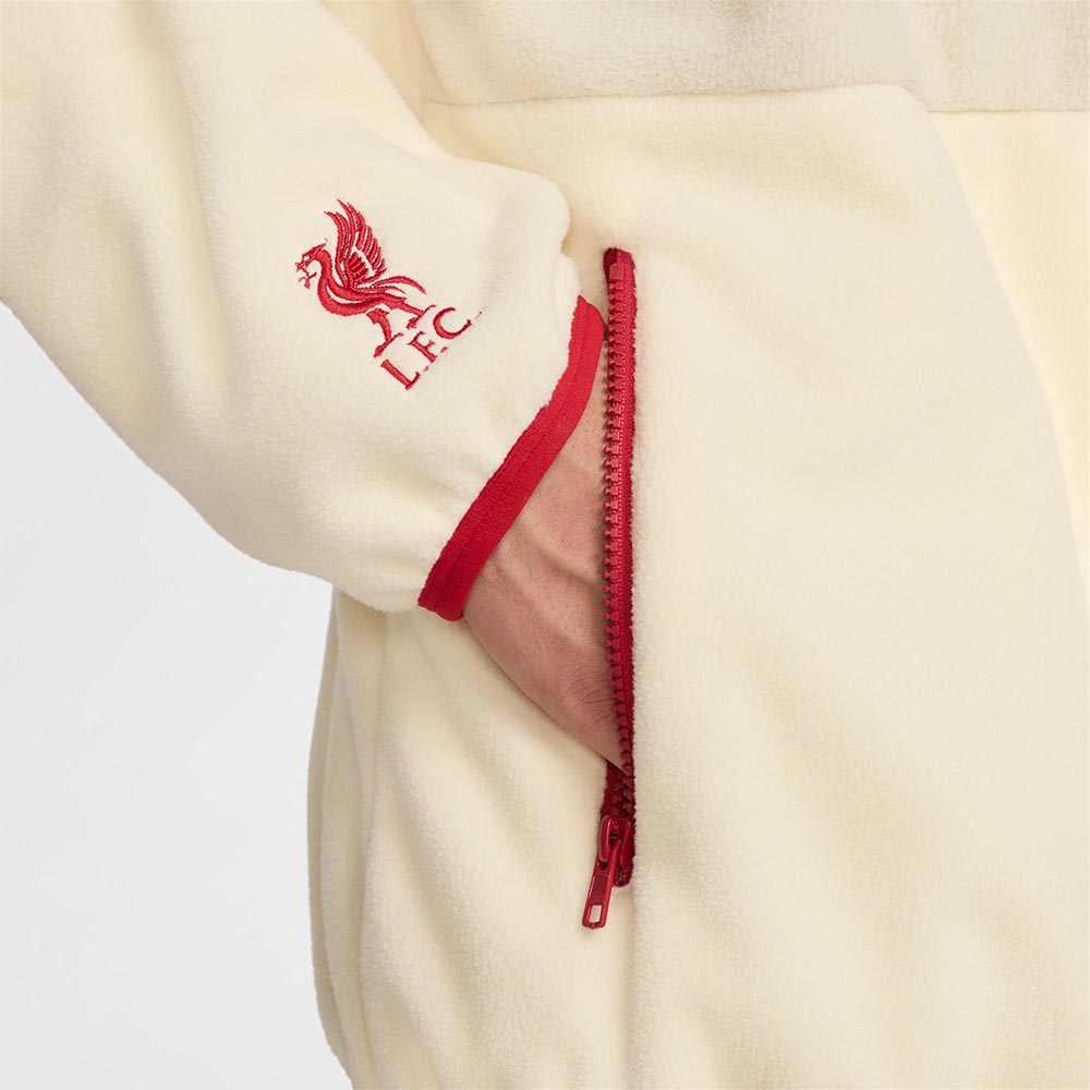 This NIKE Liverpool FC Club Special Edition Men's Football Jacket is every bit as comfy as it looks. Oversized with tonal trim to highlight the cozy design, it's perfect for layering. And zippered pockets let you securely store your essentials or warm your hands.