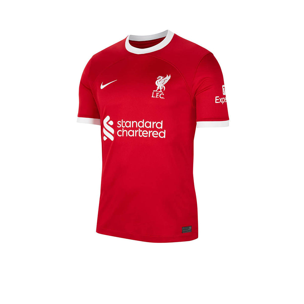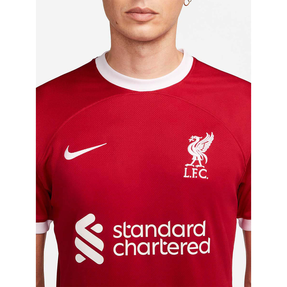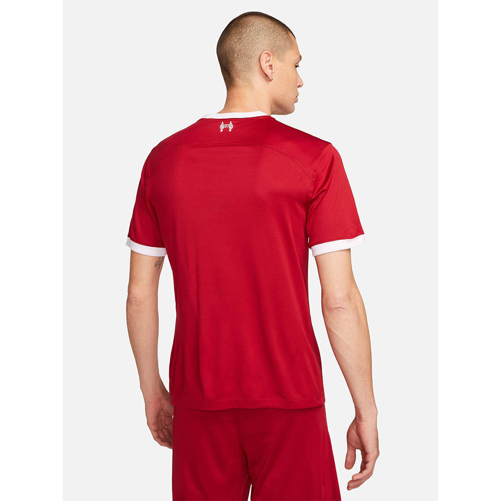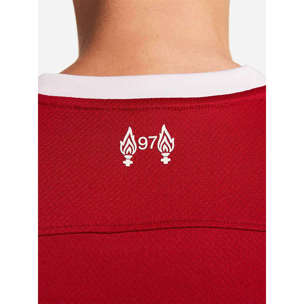 Packed with details, the NIKE Men's Liverpool FC Home Stadium 2023/24 Jersey remembers the 97 people who tragically died in the Hillsborough Disaster. A 97 set between two eternal flames resides on the inner pride while white accents at the collar and sleeves nod to a jersey the legendary ’74 squad wore. Our Stadium collection pairs replica design details with sweat-wicking technology to give you a game-ready look inspired by your favorite team.