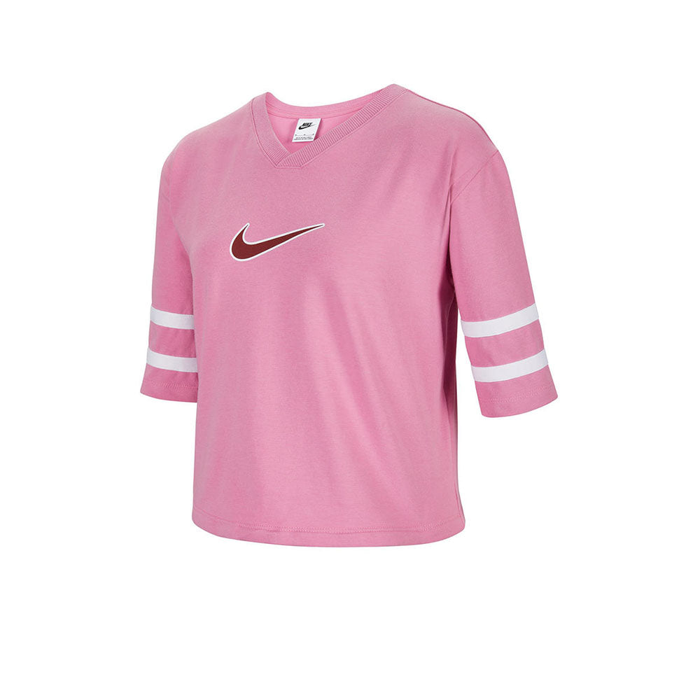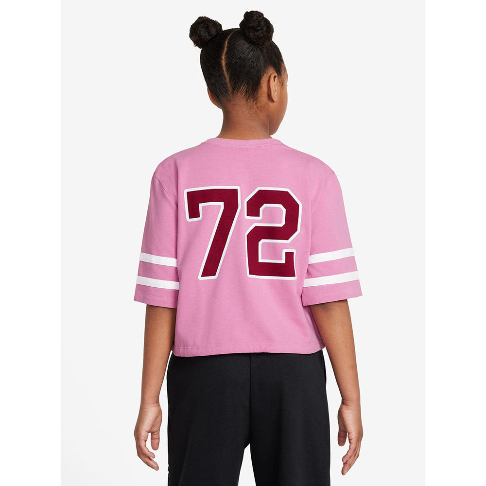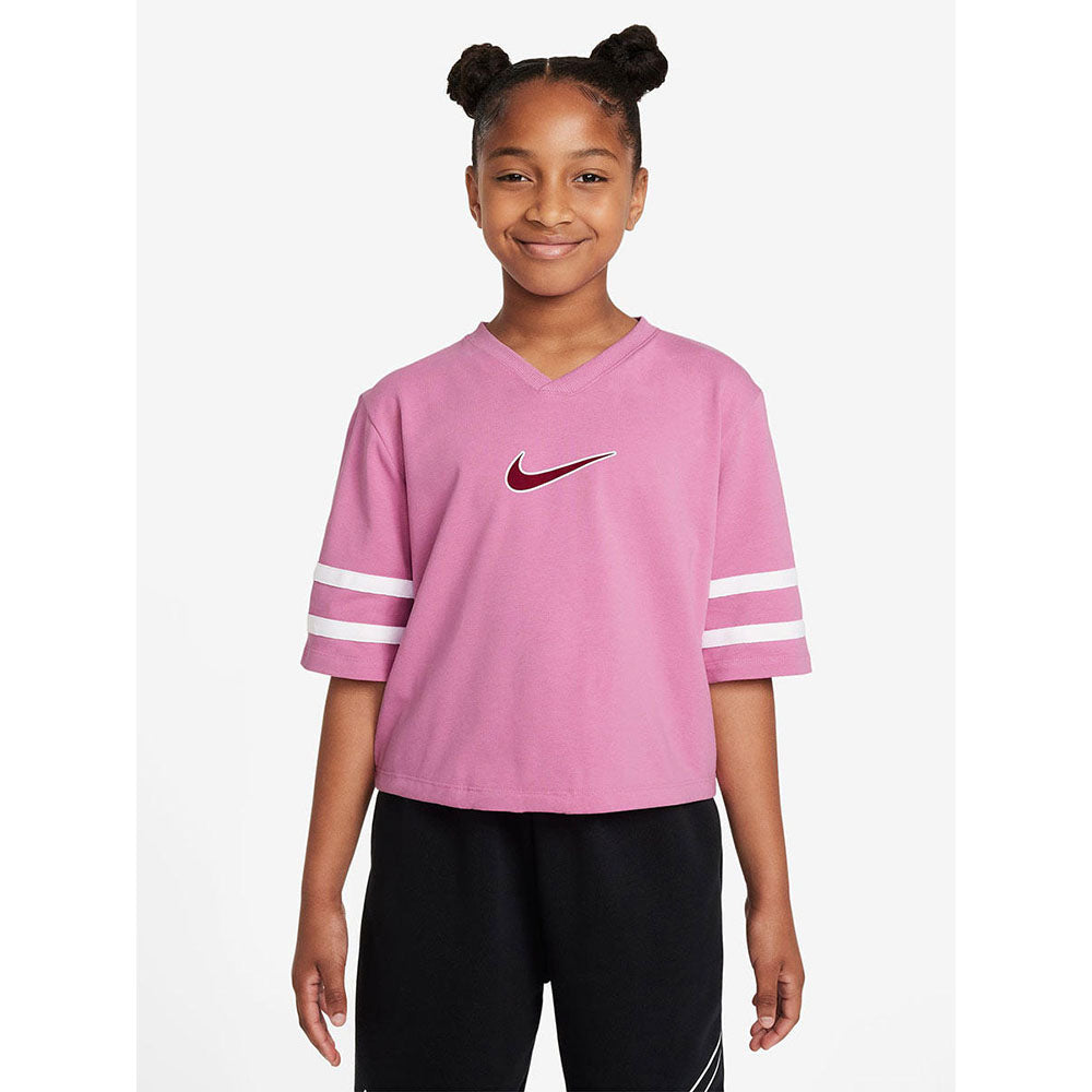 Personalize the fit of this NIKE Sportswear Girls T-Shirt using the drawcord at the hem. With style inspired by the jerseys your favorite players wear, it has a relaxed and athletic look.