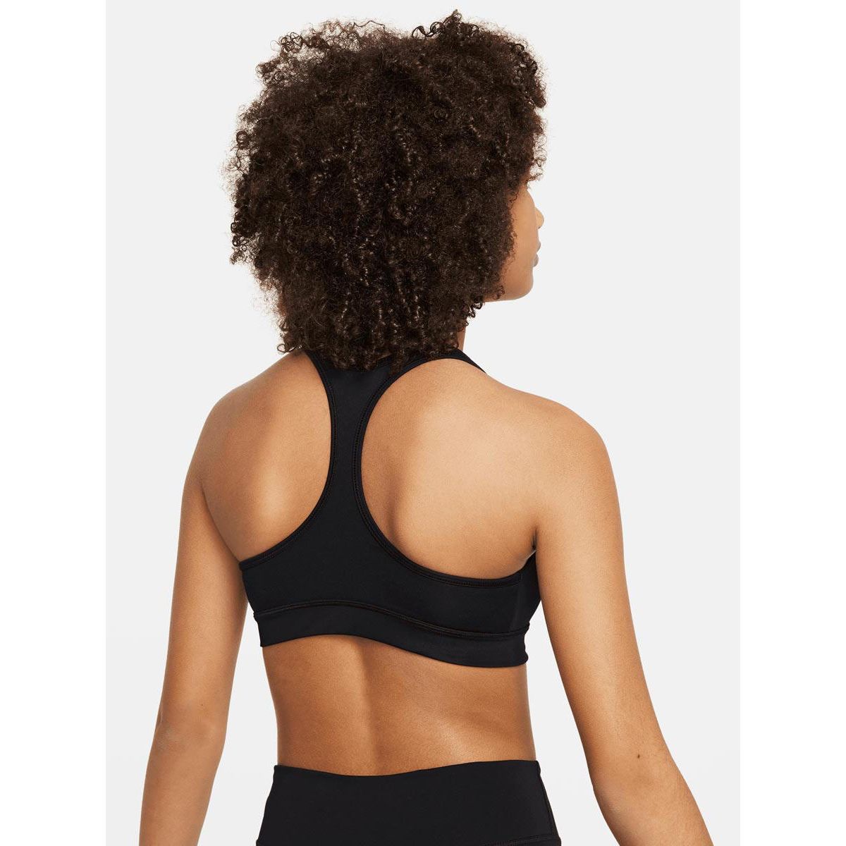 With a snug racerback design, the NIKE Swoosh girls sports bra is more than just comfortable—it sends sweat packing. Our lightweight fabric moves sweat away from your body to help you stay dry, cool and focused, so you never have to sit a play Model: FJ7161-010 Color: Black Config : NI083AP292DUTH