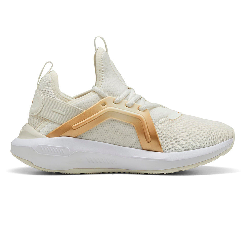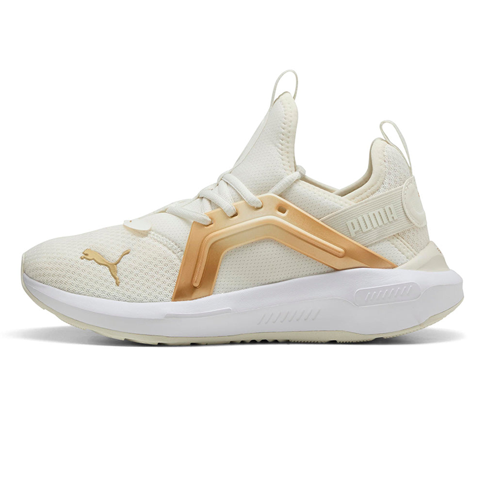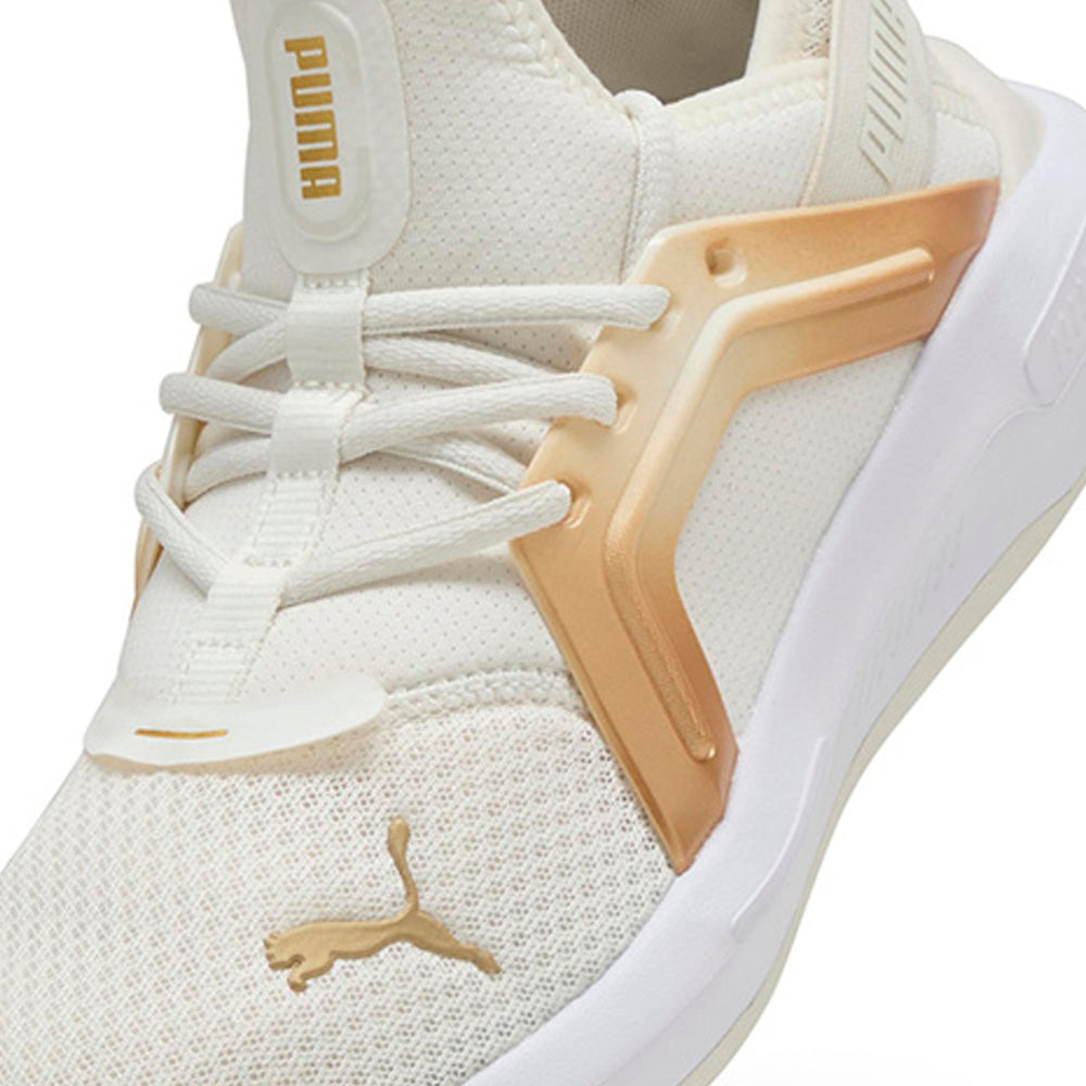 Unleash your bold side with the new PUMA Softride Enzo 5 Metallic Women's Running Shoes, made specifically for women. Featuring SOFTRIDE EVA for all-day cushioning, a sleek TPU cage, and eye-catching jewel detailing in the midsole. The webbing lock-down fit ensures you stay stylish and secure, wherever your day takes you.