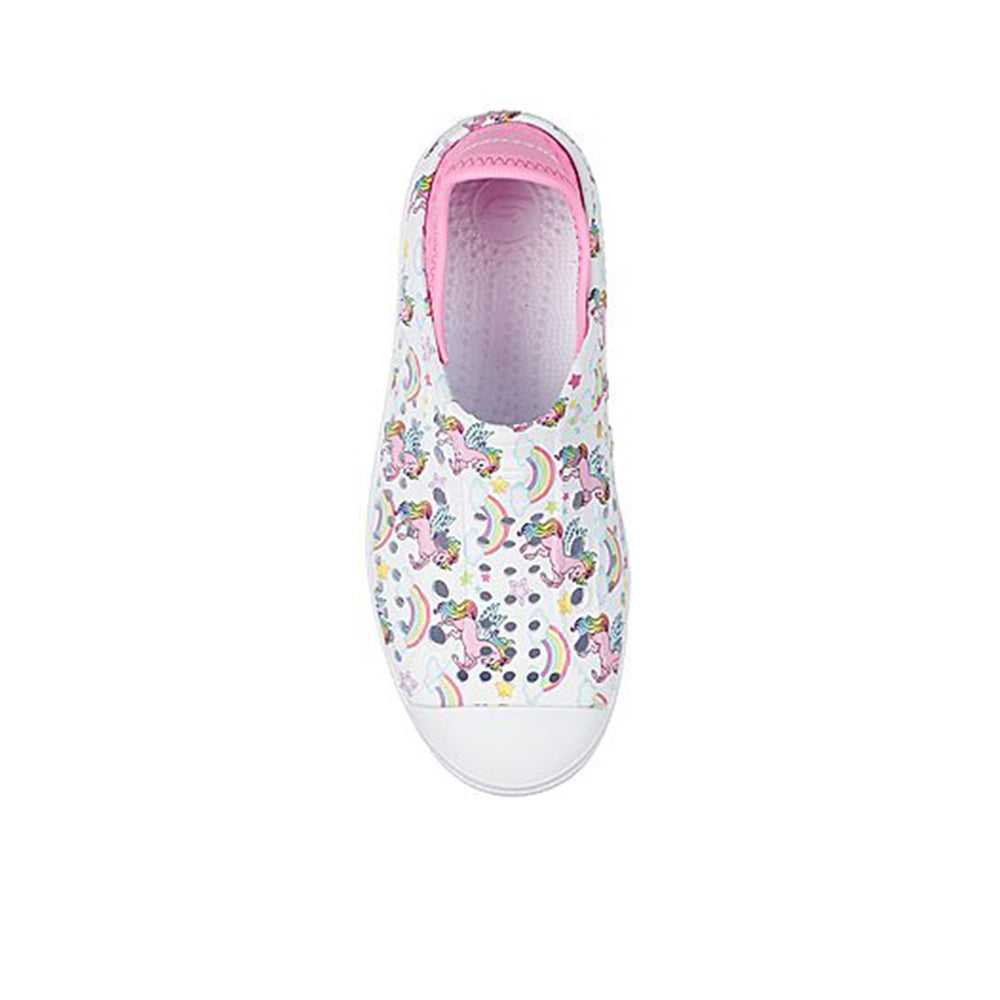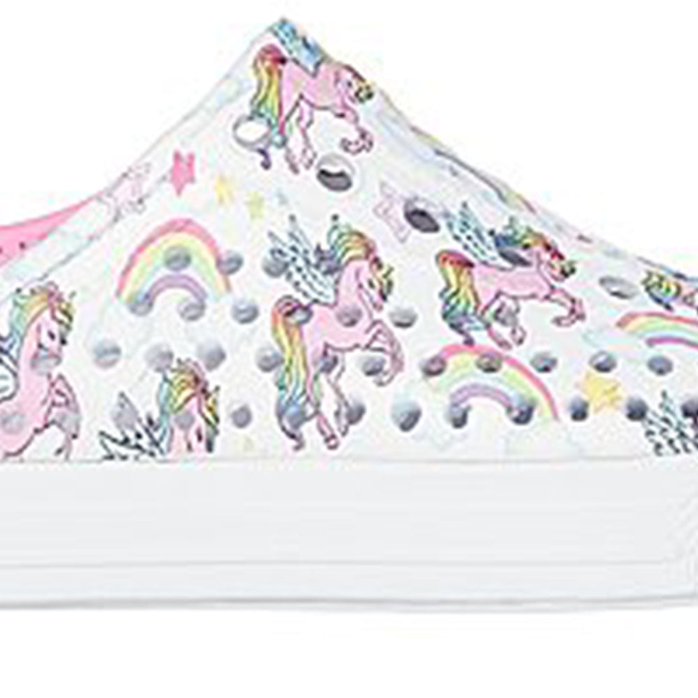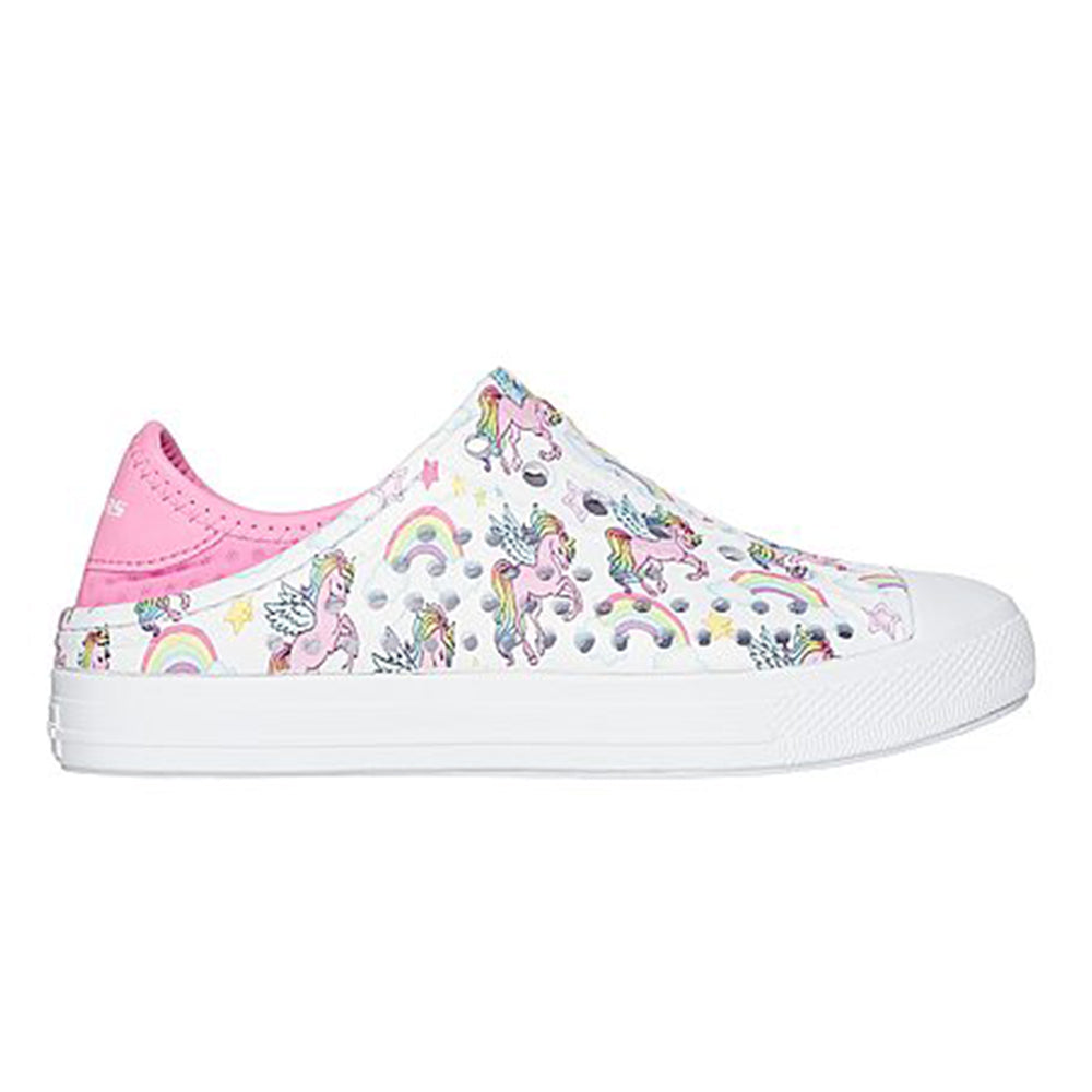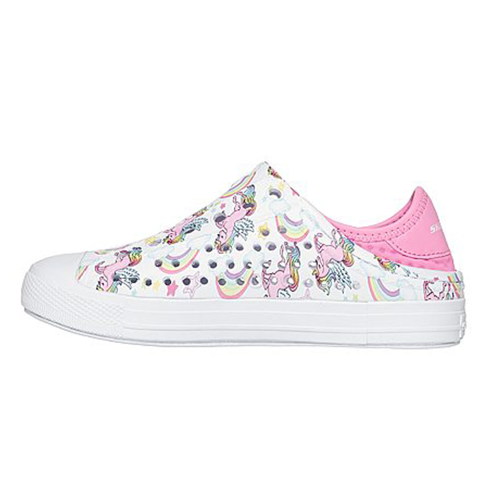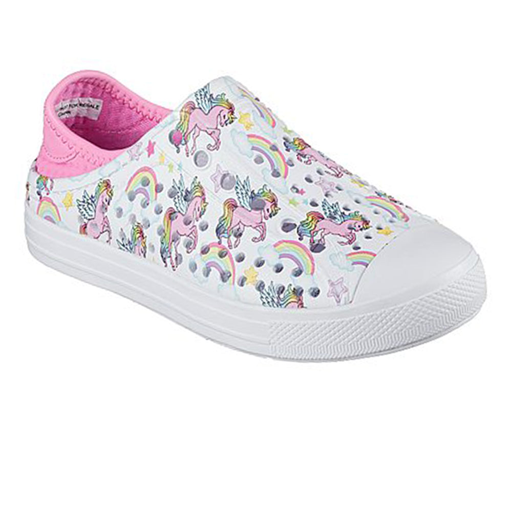 Soar into magical fun and comfort wearing SKECHERS Foamies®: Guzman Steps Girls Casual Shoes. This water-friendly design features a perforated Foamies® EVA upper with a collapsible neoprene heel and a cushioned comfort footbed.