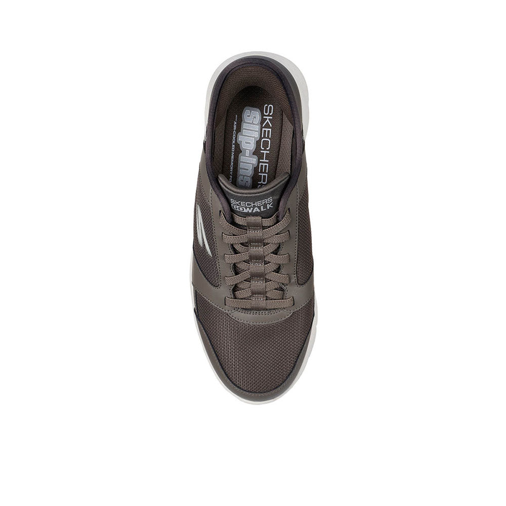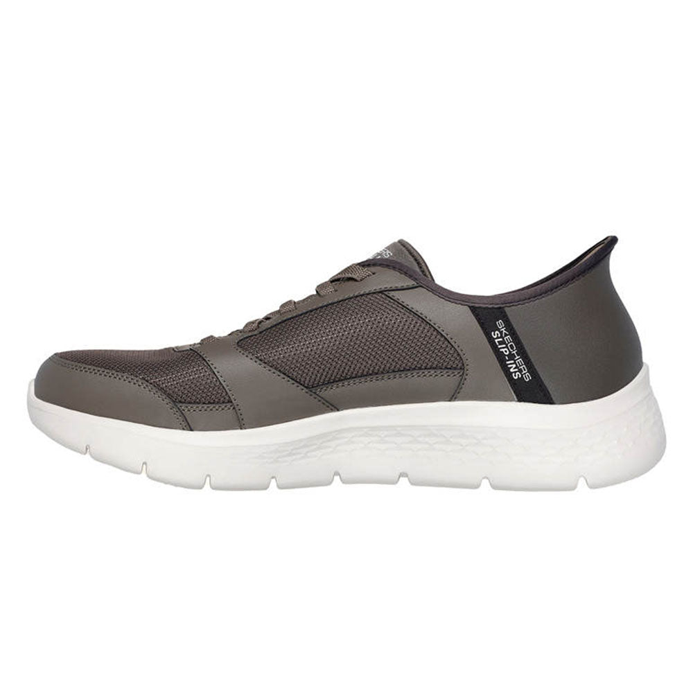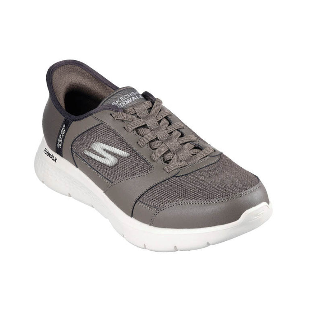 Step-in to convenient walking comfort and cushioning wearing SKECHERS Slip-ins® GO WALK® Flex - Anza Men's Training Shoes. Designed with our exclusive Heel Pillow™, this sporty style features a mesh and synthetic upper with stretch laces, Skechers Air-Cooled Memory Foam® insole, lightweight ULTRA GO® cushioning, and Flex Pillars™ for added support.