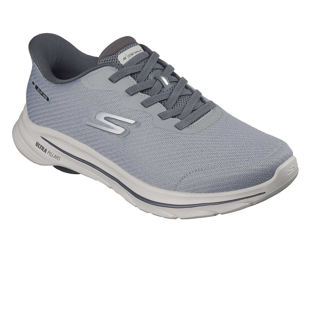 Put a stylish spring in your step with SKECHERS Hands Free Slip-ins®: GO WALK 8 - Pate Men's Training Shoes. Designed with our exclusive Heel Pillow™, this slip-on walking style features an athletic mesh upper with fixed stretch laces, a high-rebound Skechers Air-Cooled Goga Mat™ insole, and lightweight ULTRA GO® midsole cushioning.