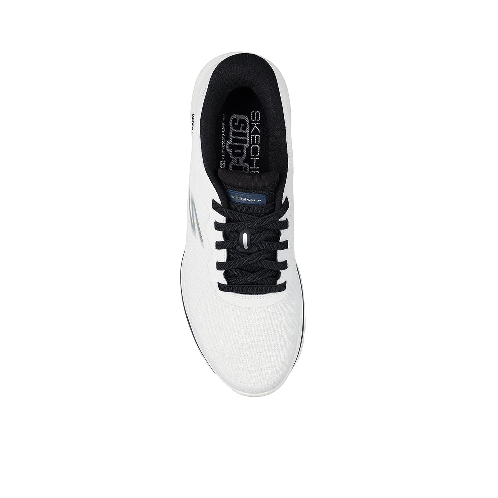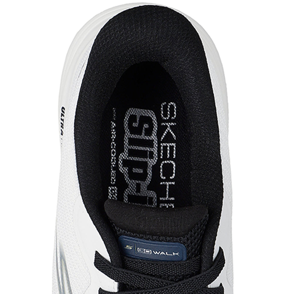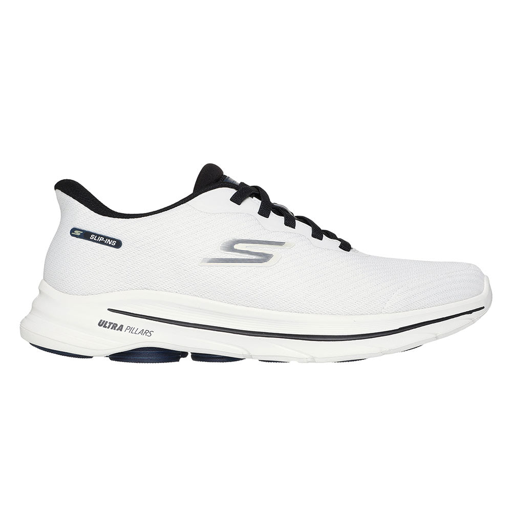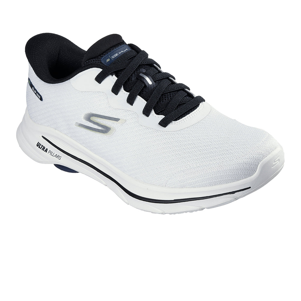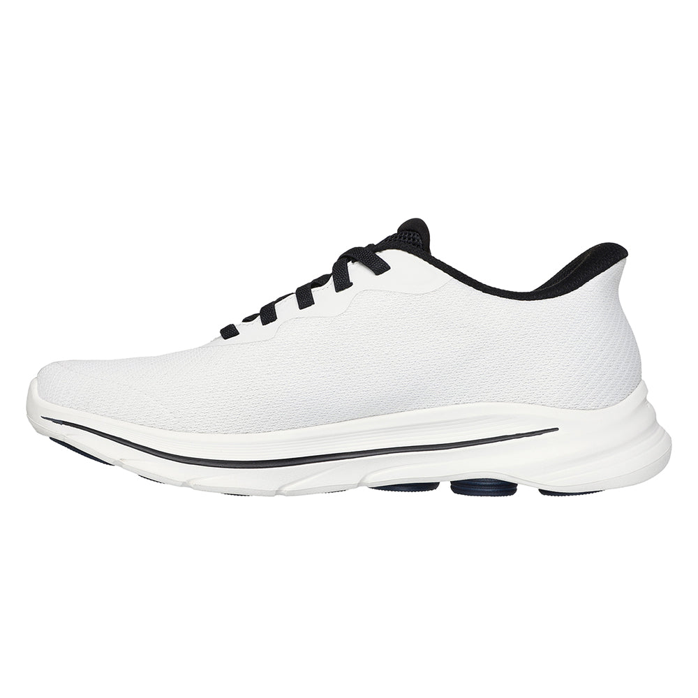 Put a stylish spring in your step with SKECHERS Hands Free Slip-ins®: GO WALK™ 8 - Pate Men's Training Shoes. Designed with our exclusive Heel Pillow™, this slip-on walking style features an athletic mesh upper with fixed stretch laces, a high-rebound Skechers Air-Cooled Goga Mat™ insole, and lightweight ULTRA GO® midsole cushioning.