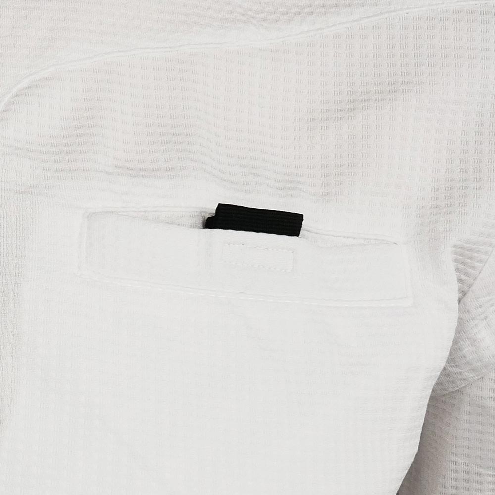 WARRIX Referee 2022 Unisex Polo Shirt, tailored with fabric patchwork at the chest, with perforated pockets and Velcro tape on both chests. The cuffs are made of 100% polyester fiber, lightweight, cool, and breathable, woven in a waffle pattern, unique to Warrix, with a pattern made from heat-pressed embossing technique, meeting the needs of referees and athletes.