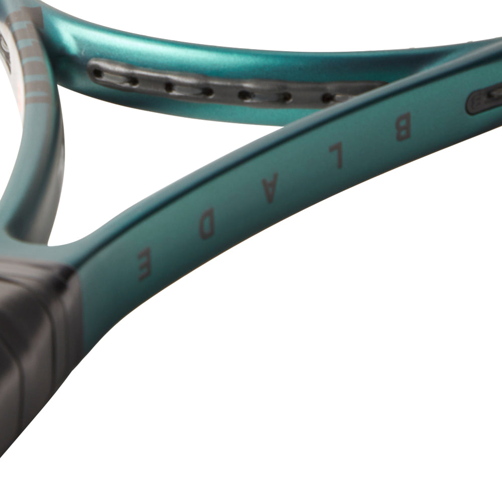 The WILSON Blade 98 16X19 V9 Tennis Racket has a sharper, more stable response that produces a more connected-to-the-ball feel. Featuring a new Emerald Night matte finish, the V9 has a braided graphite + basalt frame with a DirectConnect carbon fiber handle for enhanced torsional stability.