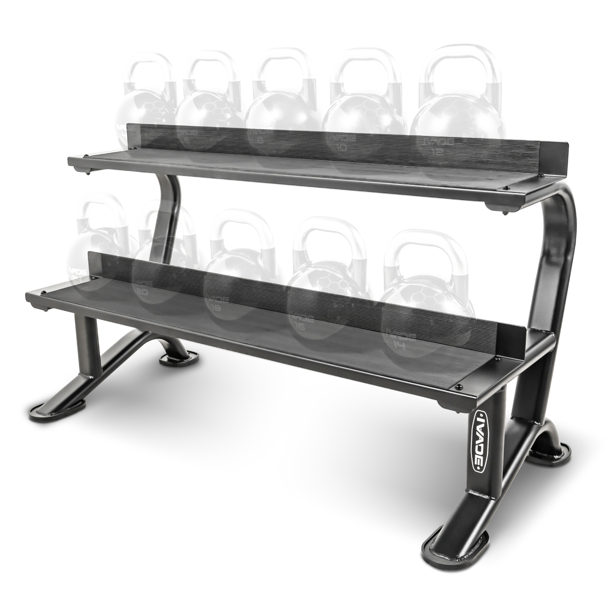 ชั้นวาง KETTLEBELL 2 ชั้น สินค้าใหม่จาก IRONTEC รับน้ำหนักได้มากรองรับ Kettlebell ทุกขนาดได้อย่างสมดุล เหมาะสำหรับการใช้งานในพิตเนสหรือยิมที่มีการใช้งานหนัก ดีไซน์ทันสมัย สีดำด้านที่เรียบหรูช่วยเสริมบรรยากาศให้พื้นที่ออกกำลังกายของคุณดูเป็นมืออาชีพ ประหยัดพื้นที่การใช้งานไม่ต้องวาง Kettlebell เกะกะตามพื้น โครงสร้างเหล็กหนา ผ่านการเคลือบสีพิเศษเพื่อป้องกันการขีดข่วน และสนิม รับน้ำหนักได้ มากถึง 140 กิโลกรัม // **ทางบริษัทจัดส่งสินค้าผ่านบริการขนส่งเอกชน ลูกค้าสามารถติดตั้งสินค้าเองได้อย่างง่ายดายตามคู่มือ