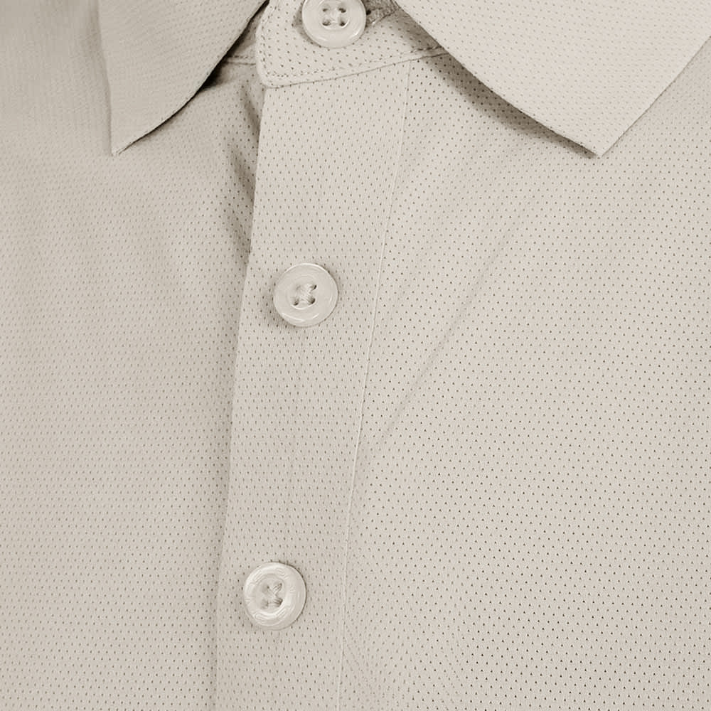 - คอปกโปโลแบบคลาสสิกพร้อมแผงกระดุม