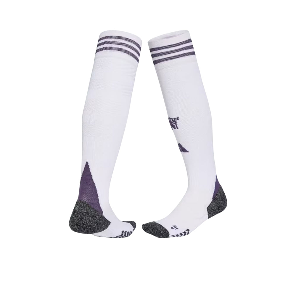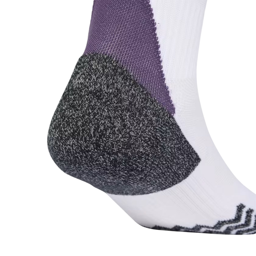 ไอเทมนี้เป็นส่วนหนึ่งของชุดแข่งที่นำเอาลุคเกล็ดหิมะที่เป็นไอคอนของแมนเชสเตอร์ยูไนเต็ดกลับมาอีกครั้งหลังจากหายไปนาน ถุงเท้าฟุตบอลผู้ชายทีมแมนเชสเตอร์ ยูไนเต็ด ชุดเยือน ฤดูกาล 2025/26 ของ ADIDAS คู่นี้หยิบยืมดีเทลตราปีศาจและขอบสีม่วงมาจากเสื้อฟุตบอลชุดเยือนที่มีสีสันของสโมสร เนื้อผ้ายืดหยุ่นให้การซัพพอร์ตและมอบสัมผัสสบายตลอดการเคลื่อนไหว เทคโนโลยี AEROREADY จะช่วยจัดการกับความชื้นเพื่อให้เท้าของคุณแห้งสบายพร้อมลุยในวันแข่งขัน