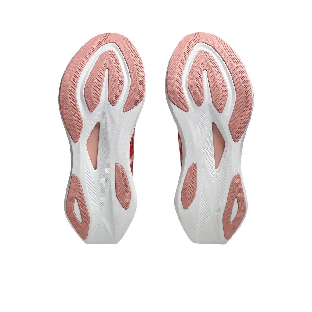 รองเท้าวิ่งผู้หญิง ASICS Sonicblast มอบความเบาสบายและตอบสนองได้ดี เหมาะสำหรับการวิ่งแบบเทมโป การออกกำลังกาย และการแข่งขัน รองเท้าวิ่งรุ่นนี้มีส้นเท้าที่มั่นคงและการเปลี่ยนผ่านของปลายเท้าที่ยืดหยุ่นกว่ารุ่นอื่นๆ ทำให้เป็นตัวเลือกที่นักวิ่งหลายคนเข้าถึงได้ง่ายขึ้น พื้นรองเท้าชั้นกลางมีโฟมสองชั้น พร้อมระบบลดแรงกระแทก FF BLAST™ MAX และ FF TURBO™ SQUARED เพื่อช่วยมอบประสบการณ์การวิ่งที่เบา เด้ง และรองรับแรงกระแทกขั้นสูง นอกจากนี้ ยังมี ASTROPLATE™ (แผ่น PEBAX) อยู่ตรงกลางโฟม ช่วยส่งแรงส่งไปข้างหน้า มอบความรู้สึกที่เร็วขึ้นใต้ฝ่าเท้า