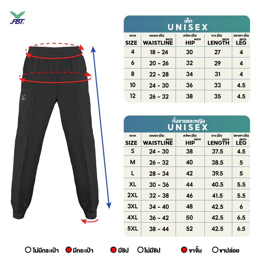 FBT FBT กางเกงวอร์ม ผ้าวอร์ม ขาจั๊ม สีดำ S-2XL C2F725