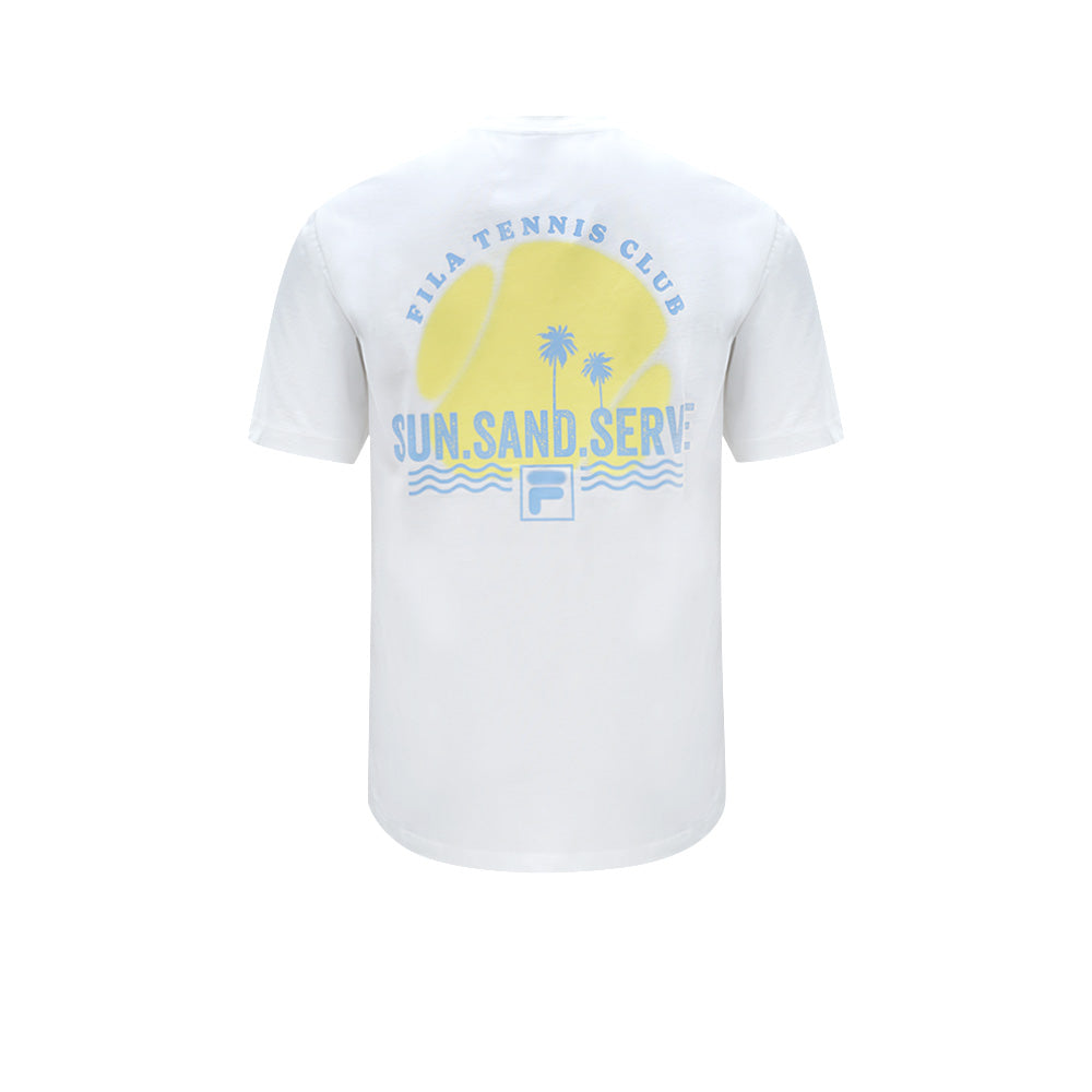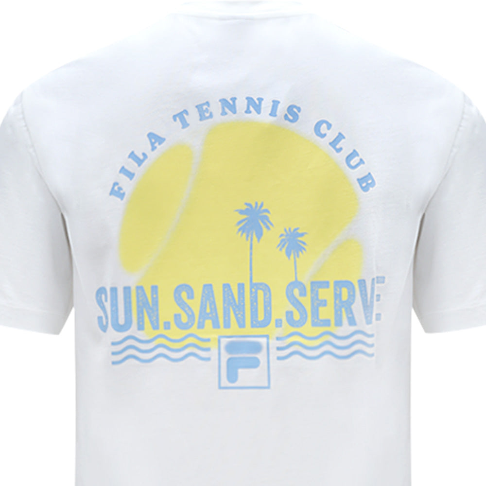 สัมผัสแสงแดดและบรรยากาศชายหาดไปกับเสื้อยืดผู้ใหญ่ FILA Sun Sand Serve ตัวนี้ เสื้อยืดลำลองตัวนี้เหมาะสำหรับการผจญภัยในฤดูร้อนของคุณ ไม่ว่าคุณจะออกไปตีเทนนิส พักผ่อนริมสระน้ำ หรือเพียงแค่เพลิดเพลินกับวันสบายๆ