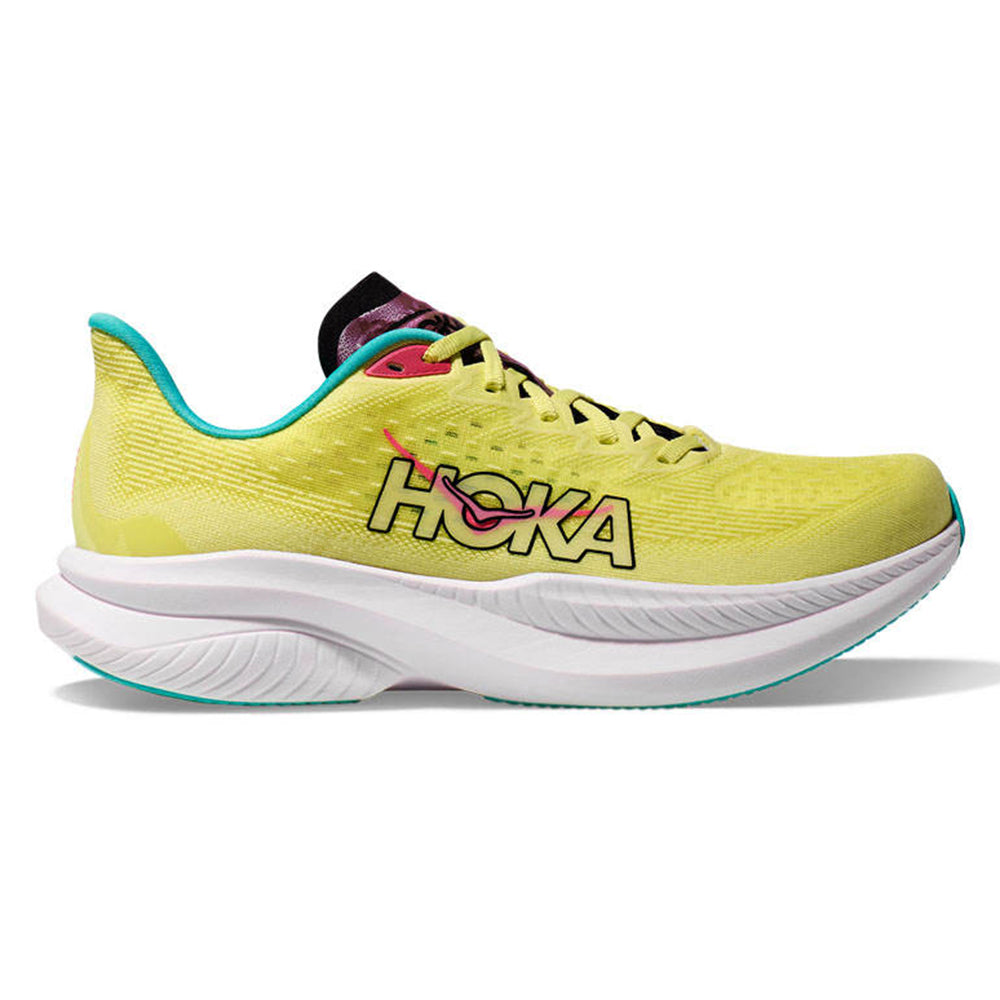 พบกับ Mach รุ่นใหม่ที่เบาที่สุดและตอบสนองได้ดีที่สุดเท่าที่เคยมีมา รองเท้าวิ่งผู้ชาย HOKA Mach 6 รุ่นนี้ได้รับการปรับแต่งให้ตอบสนองได้ดีขึ้นด้วยพื้นรองเท้าชั้นกลางจากโฟมที่มีประสิทธิภาพสูงสุด และปรับปรุงให้มีความทนทานยิ่งขึ้นด้วยพื้นรองเท้าชั้นนอกที่หุ้มด้วยยางยืดหยุ่น เราใช้รายละเอียดการออกแบบที่เน้นความเร็ว และใช้อัปเปอร์ที่ทำจากผ้าแจ็คการ์ดแบบใหม่ที่ระบายอากาศได้ดี และมีโครงเสริมด้านในเพื่อมอบความสบายที่โอบกระชับเท้า เพื่อช่วยให้คุณทำลายสถิติส่วนตัวครั้งต่อไป