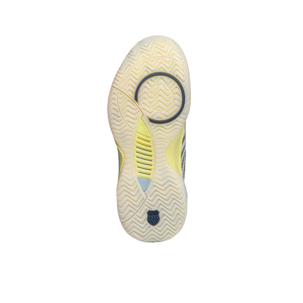 รองเท้าเทนนิสผู้หญิง K-SWISS Hypercourt Supreme 2 ออกแบบมาเพื่อการเล่นที่เน้นประสิทธิภาพสูง มอบความสบายน้ำหนักเบา ดีไซน์แบบบูทีคอล และ Durawrap X ป้องกันการลากที่ยืดหยุ่น พื้นรองเท้าชั้นกลางแบบสองชั้นช่วยเพิ่มการรองรับและการตอบสนองที่รวดเร็ว ขณะที่พื้นรองเท้าชั้นนอก Dragguard 7.0 มอบการยึดเกาะที่ดีเยี่ยมและการควบคุมการสไลด์