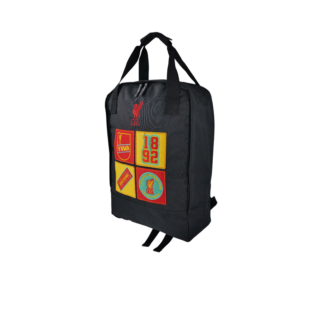 - กระเป๋าเป้สะพายหลังมีแพทช์สไตล์ตกแต่งสี่อัน และกระเป๋าสตางค์มีพิมพ์ลายลิเวอร์พูลทั่วทั้งใบ
