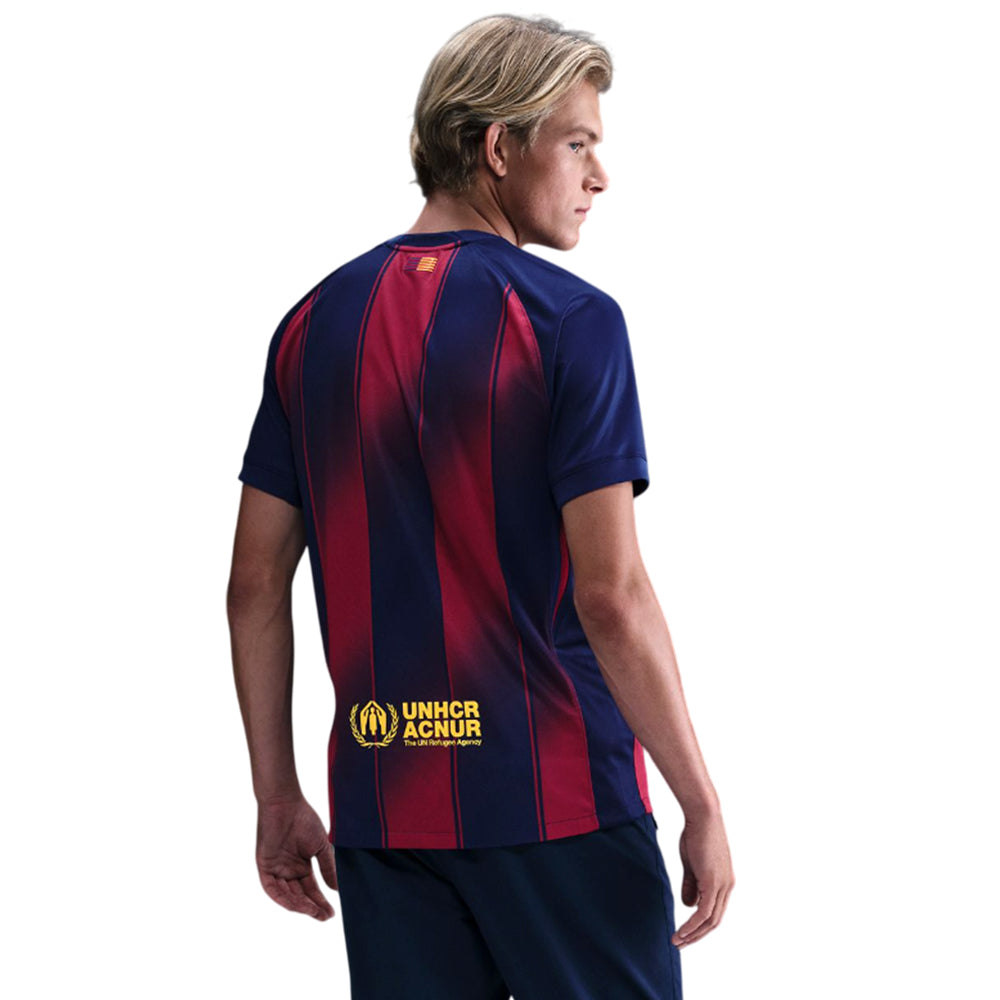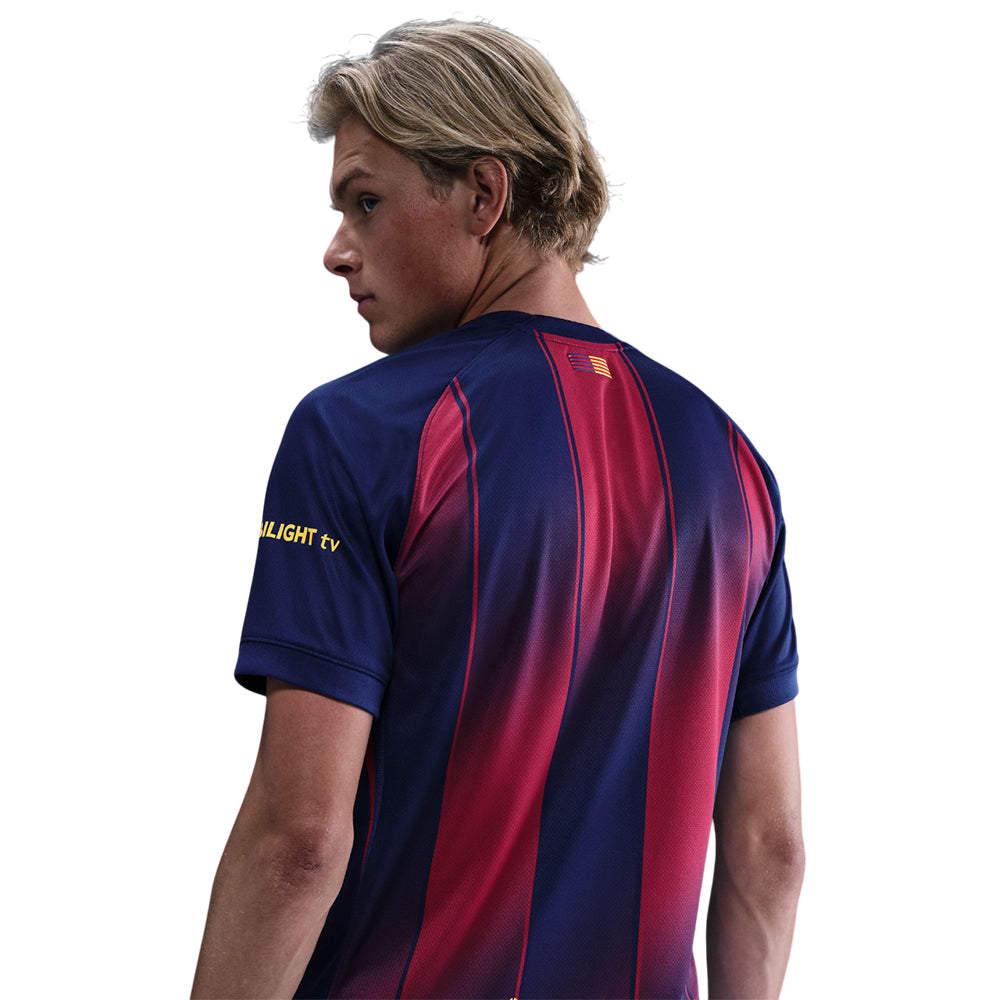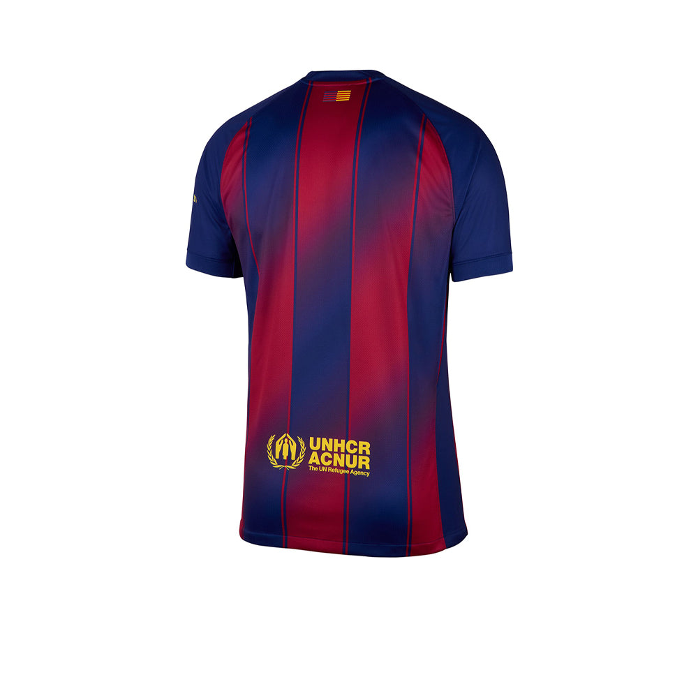 เสื้อแข่งผู้ชายทีมบาร์เซโลน่า ชุดเหย้า เกรด Stadium ฤดูกาล 2025/26 ของ NIKE ถือเป็นการอัพเดตรูปลักษณ์ที่เป็นที่รู้จักมากที่สุดในวงการฟุตบอล โดยทีมบาเลนเซียอันเป็นเอกลักษณ์ของทีมผสมผสานกับกราฟิกที่ได้รับแรงบันดาลใจจากการเคลื่อนไหวและสำเนียงที่สดใสและมีพลังเพื่อเฉลิมฉลองความสามัคคีและความทุ่มเทของแฟนๆ ที่มีต่อสโมสร