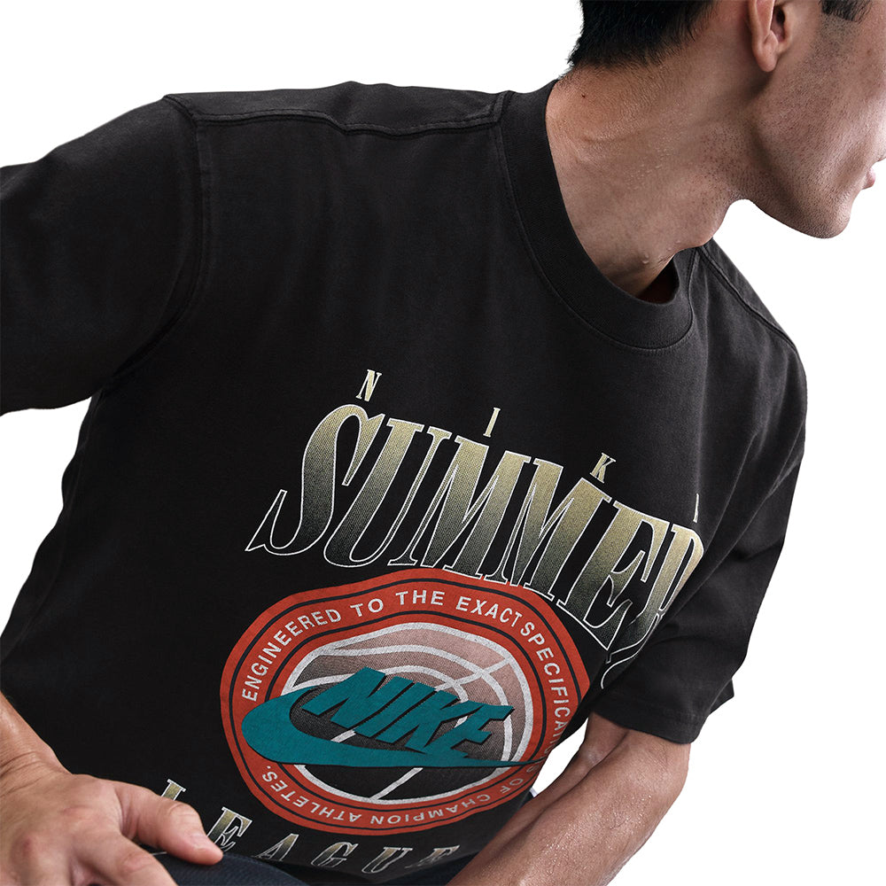 เสื้อยืดบาสเกตบอลผู้ชาย NIKE Max90 ตัวนี้ผลิตจากผ้าคอตตอนน้ำหนักปานกลางที่นุ่มสบาย ให้คุณพร้อมรับมือกับการเล่นบาสซัมเมอร์ลีก ทรงไหล่ตก แขนเสื้อที่ยาวขึ้น และทรงโปร่งตลอดช่วงตัวกับสะโพกทำให้เสื้อยืด Max90 มีลุคที่ดูลำลองและผ่อนคลาย