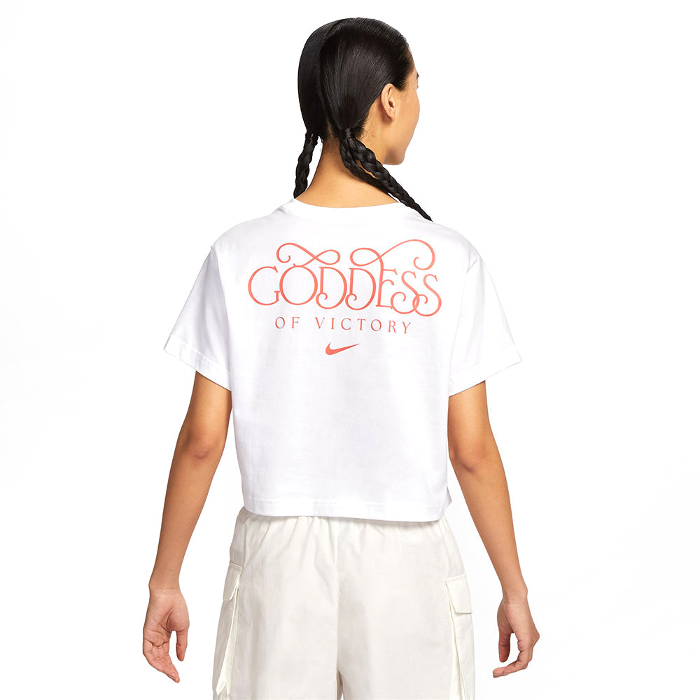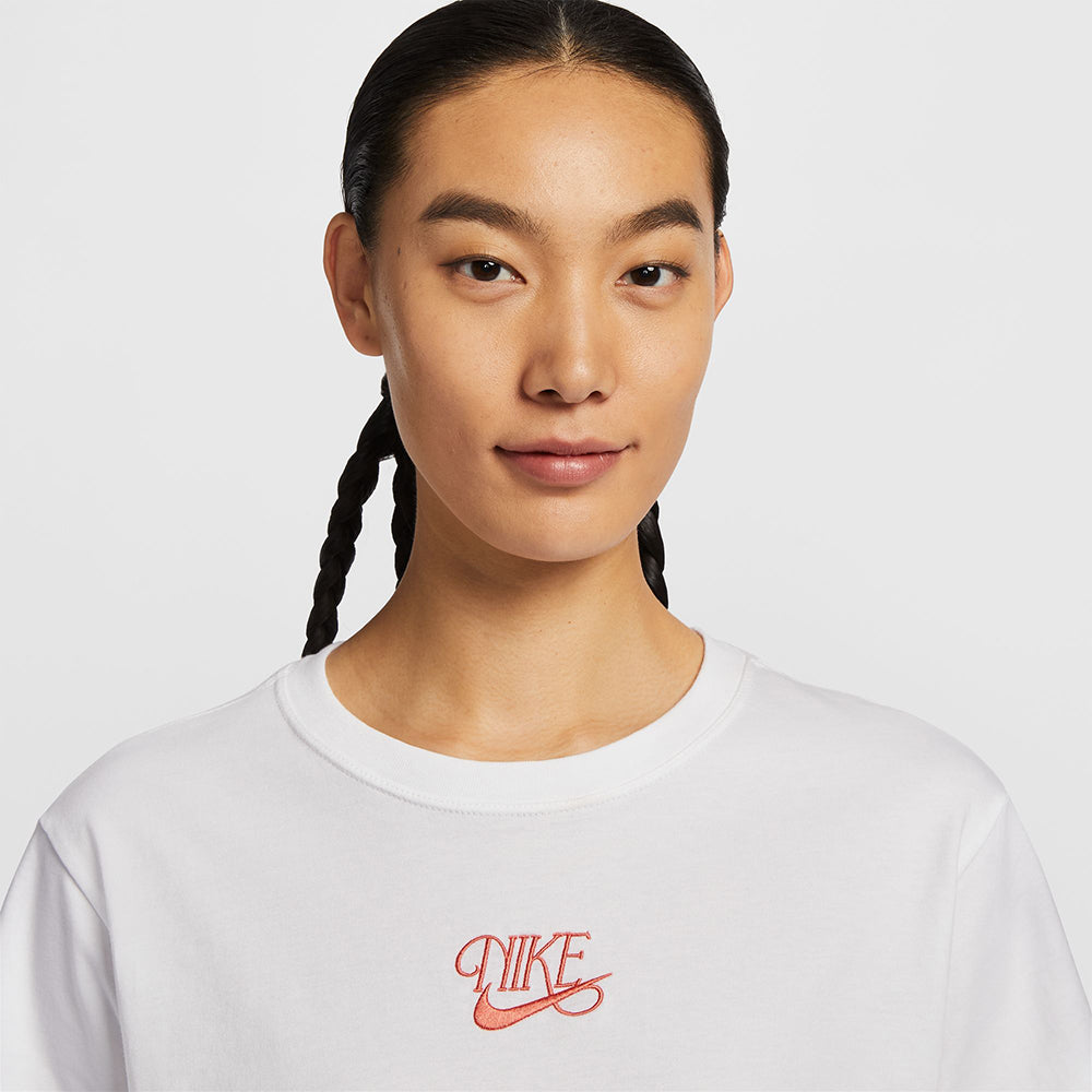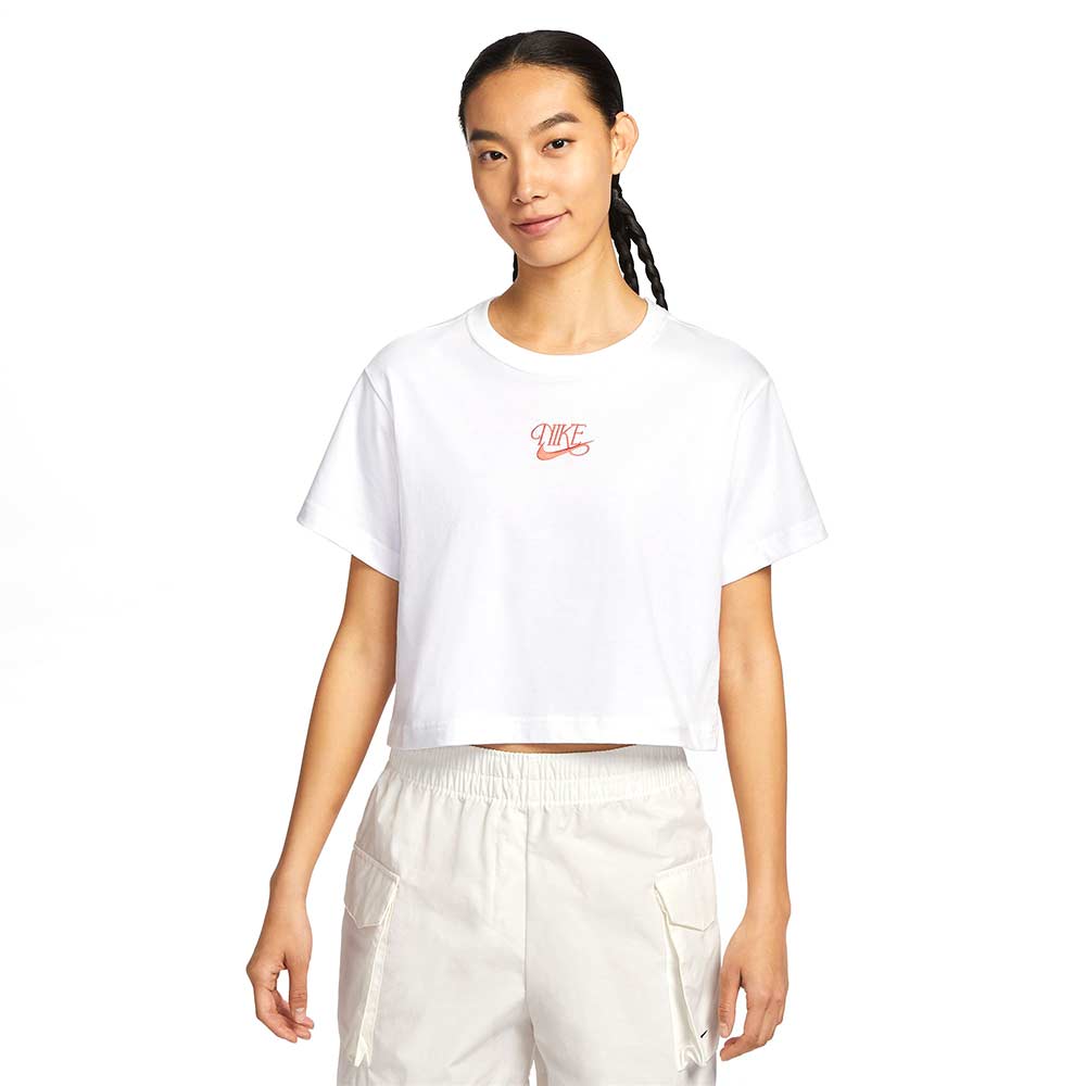 ยกย่องให้กับชื่อของเราด้วยเสื้อยืดผู้หญิง NIKE Sportswear Short-Sleeve Cropped ทรงหลวมตัวนี้ ด้วยผ้าคอตตอนน้ำหนักปานกลางทำให้มีสัมผัสนุ่มและทิ้งตัวเล็กน้อย