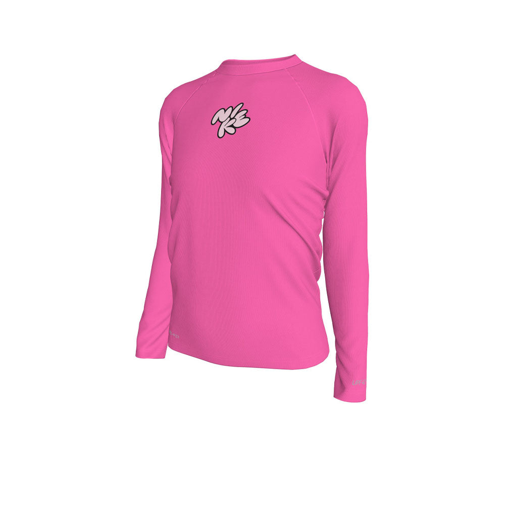 เทคโนโลยี Nike Dri-FIT จากเสื้อรัชการ์ดเด็กผู้หญิง NIKE Long-Sleeve Hydroguard ช่วยให้เด็ก ๆ แห้งสบาย ขณะเดียวกัน การป้องกันรังสียูวียังช่วยปกปิดร่างกายได้เมื่อต้องออกไปเล่นกลางแจ้งท่ามกลางแสงแดด