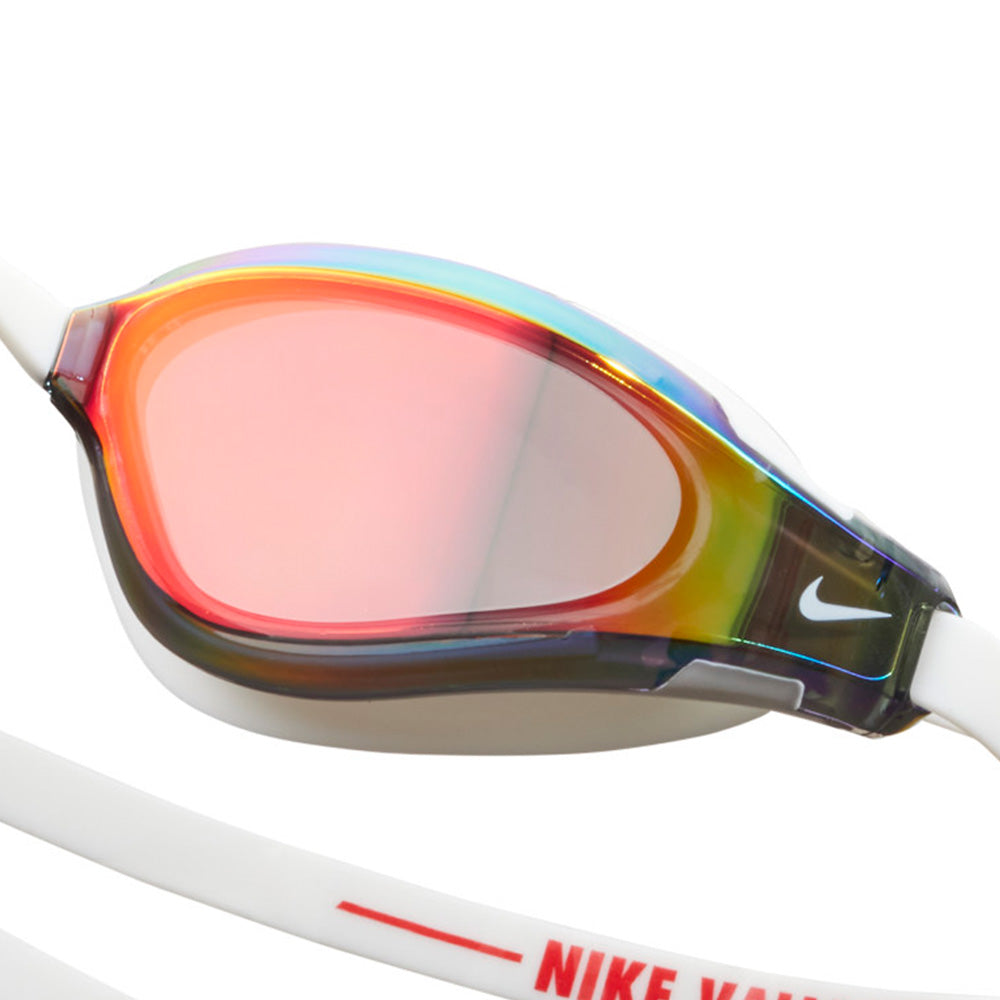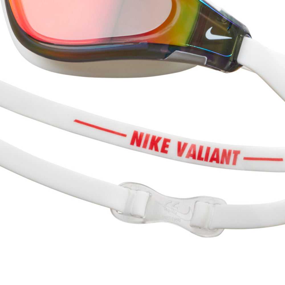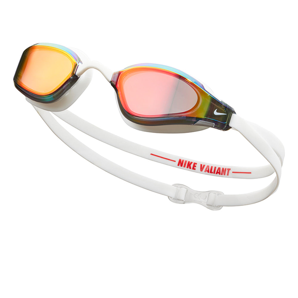 แว่นตาว่ายน้ำผู้ชาย NIKE Valiant Mirrored โดดเด่นด้วยซีล 3 มิติพร้อมจุดยืดหยุ่นที่ออกแบบให้โค้งงอและเคลื่อนไหวตามรูปทรงใบหน้าของคุณเพื่อให้สวมใส่ได้พอดีและกันน้ำได้อย่างสบาย การออกแบบที่เพรียวบางและมีน้ำหนักเบาช่วยให้คุณได้เปรียบในด้านไฮโดรไดนามิก ขณะที่การเคลือบปรอทช่วยป้องกันรังสี UV และลดแสงสะท้อน