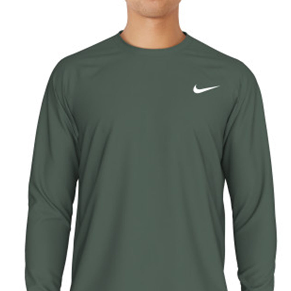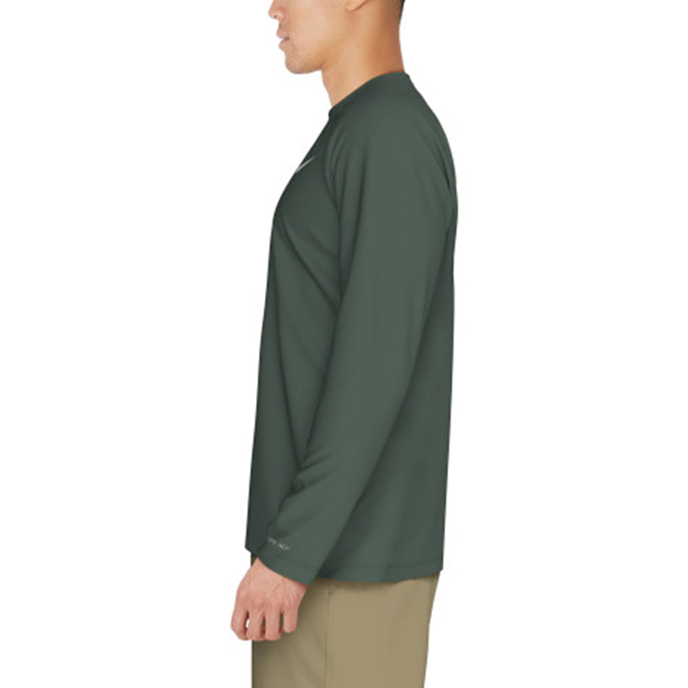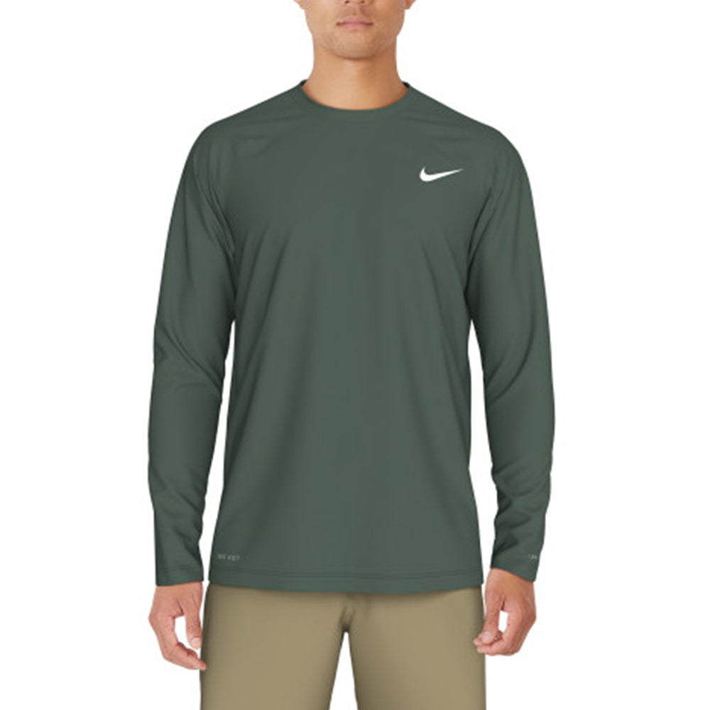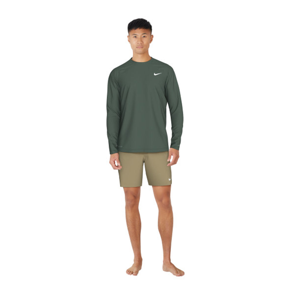 เสื้อว่ายน้ำผู้ชาย NIKE Essential Long Sleeve Hydroguard ช่วยปกป้องแสงแดดจากรังสี UV ขณะออกกำลังกายกลางแจ้ง เนื้อผ้าถักช่วยให้เสื้อตัวนี้ยืดหยุ่นตามธรรมชาติเพื่อความสบายพอดีตัว ขณะที่เทคโนโลยีระบายเหงื่อช่วยจัดการความชื้น