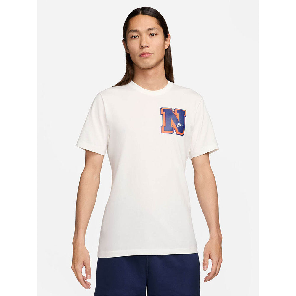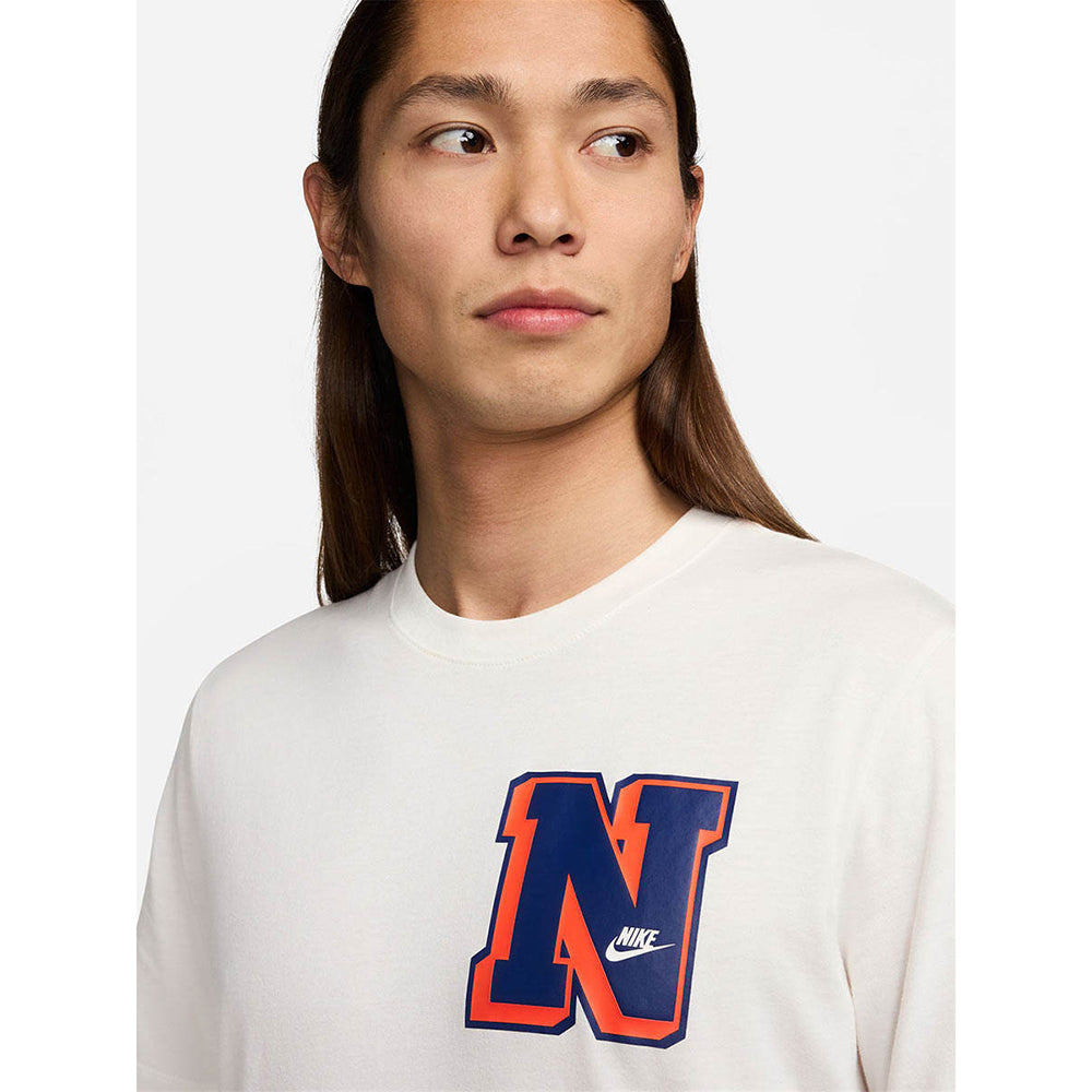 เสื้อยืดผู้ชาย NIKE Sportswear ตัวนี้นำลุคนักกีฬาวาร์ซิตี้มาใช้ โดยเป็นการมิกซ์กราฟิกลายพิมพ์แบบฟูและแบบปักเพื่อสร้างลุคที่เคารพในความดั้งเดิมของ Nike