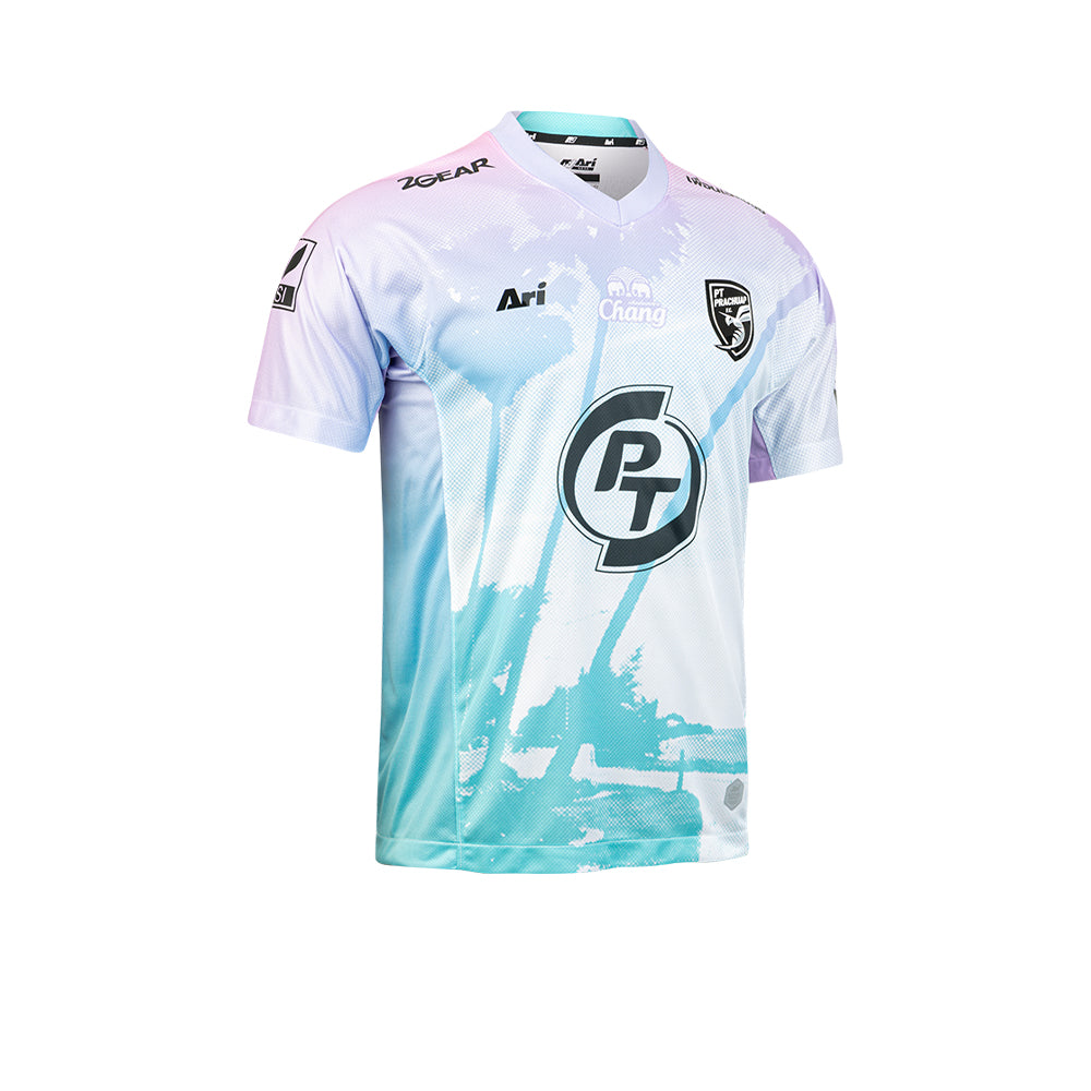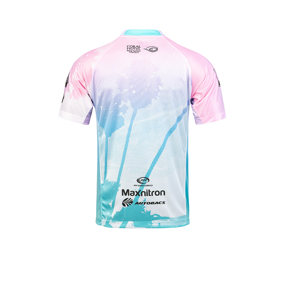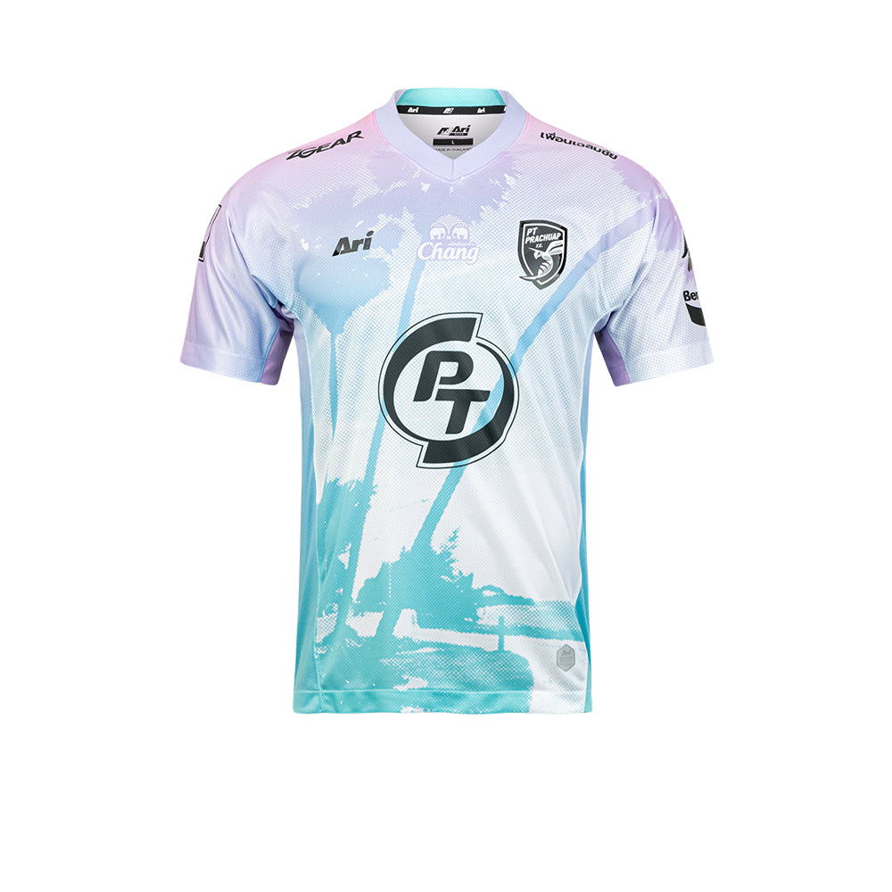 ชุดแข่งผู้ชายทีมพีที ประจวบ ชุดเยือน ฤดูกาล 2025/26 จาก PRACHUAP FC ตัวนี้มีที่มาจาก Landmark สำคัญของ อ.ปราณบุรี ที่ถูกขนานนามว่าไมอามี่เมืองไทย ด้วยความสวยงามของถนนริมหาดและต้นปาล์มสามต้นที่เรียงตัวกันอย่างสวยงามมาในสีโทนชมพูอ่อนให้ความรู้สึกอบอุ่นและสวยงาม