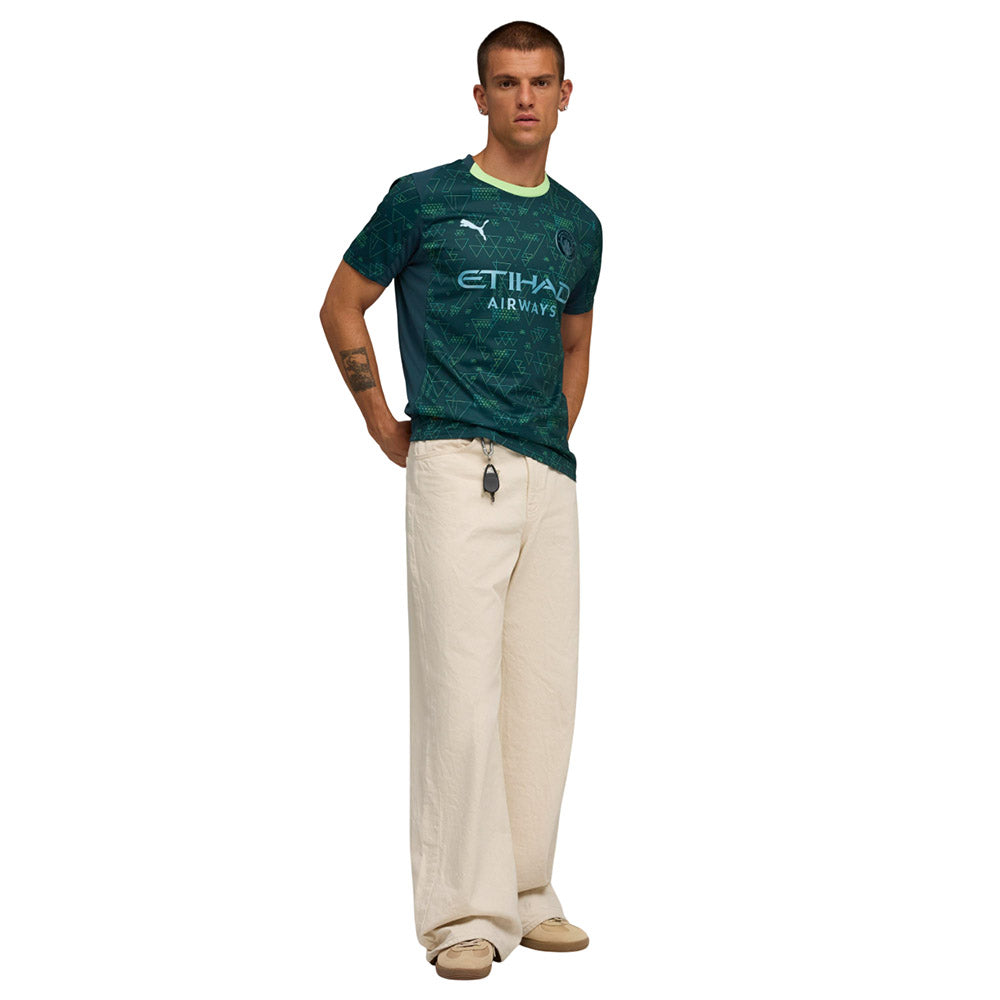 เสื้อแข่งผู้ชายทีมแมนเชสเตอร์ ซิตี้ ชุดที่สี่ เกรด Replica ฤดูกาล 2025/26 จาก PUMA ตัวนี้ สร้างสรรค์ขึ้นร่วมกับ EA SPORTS FC เพื่อยกระดับความหลงใหลในแมนเชสเตอร์ซิตี้ไปอีกขั้น ทั้งในเกมและในสนาม เป็นครั้งแรกในประวัติศาสตร์สโมสรที่เสื้อตัวนี้มาพร้อมชิป NFC บนตราสัญลักษณ์ ให้คุณแตะโทรศัพท์เพื่อปลดล็อกไอเทมสุดพิเศษใน EA SPORTS FC 26 ไม่ว่าเกมจะพาคุณไปที่ไหน สโมสรก็เป็นของคุณ
