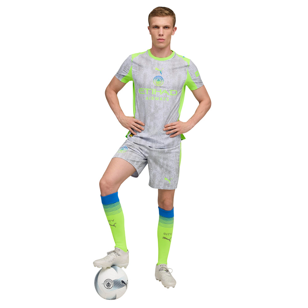 แมนเชสเตอร์ซิตี้เป็นสัญลักษณ์ของผู้คน วัฒนธรรม และอารมณ์ขันของเมืองแมนเชสเตอร์ ด้วยเหตุนี้ เสื้อแข่งผู้ชายทีมแมนเชสเตอร์ซิตี ชุดที่สาม เกรด Authentic ฤดูกาล 2025/26 ของ PUMA จึงเป็นตัวแทนของสภาพอากาศในแมนเชสเตอร์ ออกแบบมาเพื่อผู้ที่รักแมนเชสเตอร์ซิตี้ในหัวใจ ไม่ว่าฝนจะตกหรือแดดออก