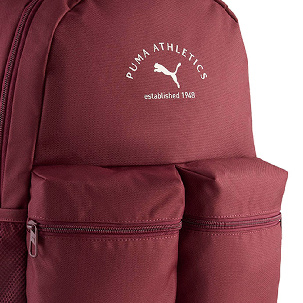 กระเป๋าเป้ผู้ใหญ่ PUMA Phase Class มีโลโก้ "PUMA ATHLETICS established 1948" สีขาว มีช่องใส่ของหลายช่อง รวมถึงช่องตาข่ายด้านข้าง สายสะพายไหล่ปรับได้