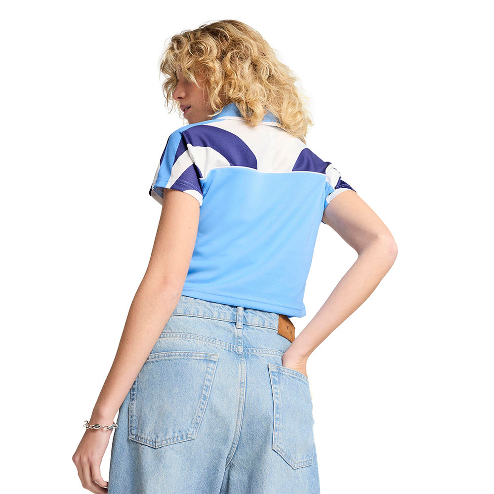 พร้อมลุยด้วยเสื้อฟุตบอลผู้หญิง PUMA Future Archive ตัวนี้ โดดเด่นด้วยตะเข็บแบบสปอร์ตพร้อมแถบพิมพ์ทั่วทั้งตัว คอเสื้อแบบจั๊มพ์ที่มีปลายตัดกัน และโลโก้ Cat อันเป็นเอกลักษณ์บนหน้าอก เหมาะสำหรับผู้ที่รักความโดดเด่นแบบไม่ต้องพยายาม