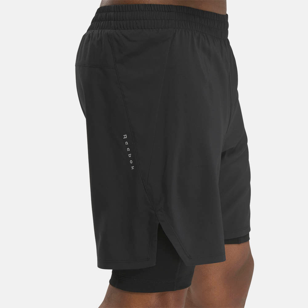 กางเกงวิ่งขาสั้นผู้ชาย REEBOK Running 2-In-1 ออกแบบมาเพื่อประสิทธิภาพไม่ว่าจะวิ่งระยะทางไกลแค่ไหน ผลิตจากผ้ารีไซเคิลพร้อมปลายขาแยกเพื่อให้เคลื่อนไหวได้เต็มที่ในทุกย่างก้าว กางเกงชั้นในทรงพอดีตัวช่วยให้รองรับร่างกายได้ดียิ่งขึ้น